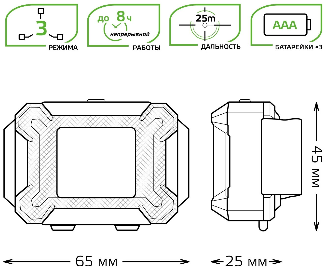 | Элементы питания | 18650(168A)/AAA/мизинчиковая(R03;LR03;FR03) |