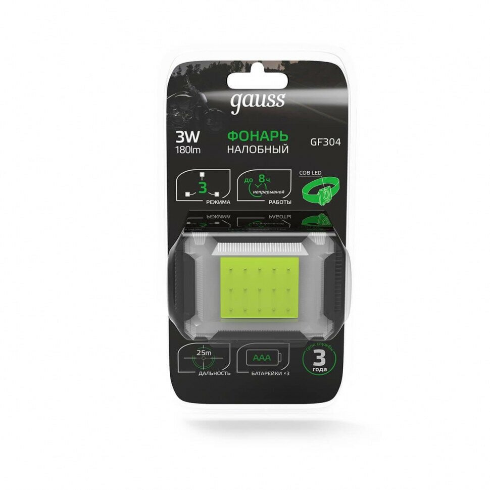 Фонарь налобный Gauss (GFL304) 180 лм 3Вт GF304 Holiday