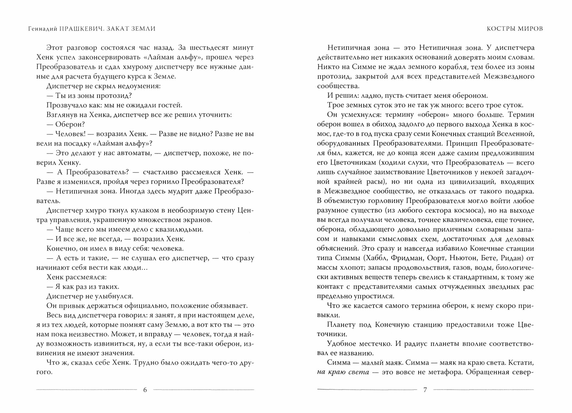 Миры Геннадия Прашкевича разнообразны и неоднозначны. В одних хотелось бы жить ("Костры миров"), другие тревожат, пугают, даже отталкивают ("Божественная комедия", "Закат Земли"), третьи удивляют и привлекают внимание своей необычностью ("Анграв-VI", "Русский струльдбруг"), но всегда эти миры написаны талантливо и интересно, и всегда заставляют задумываться над местом человека во Вселенной, над возможностями и смыслом разума.