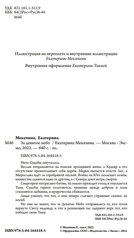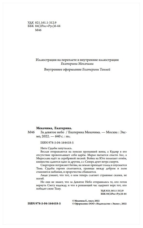 Книга: За девятое небо (Екатерина Мекачима); Эксмо, Редакция 1, 2022