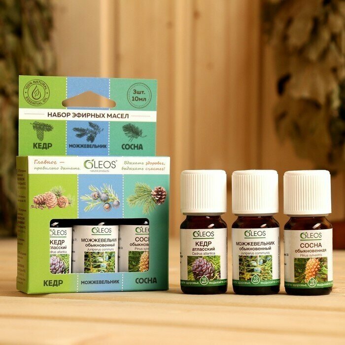 Набор масел эфирных Oleos/Олеос: Кедр атласский 10мл+Можжевельник обыкновенный 10мл+Сосна обыкновенная 10мл Олеос ООО (1280923)