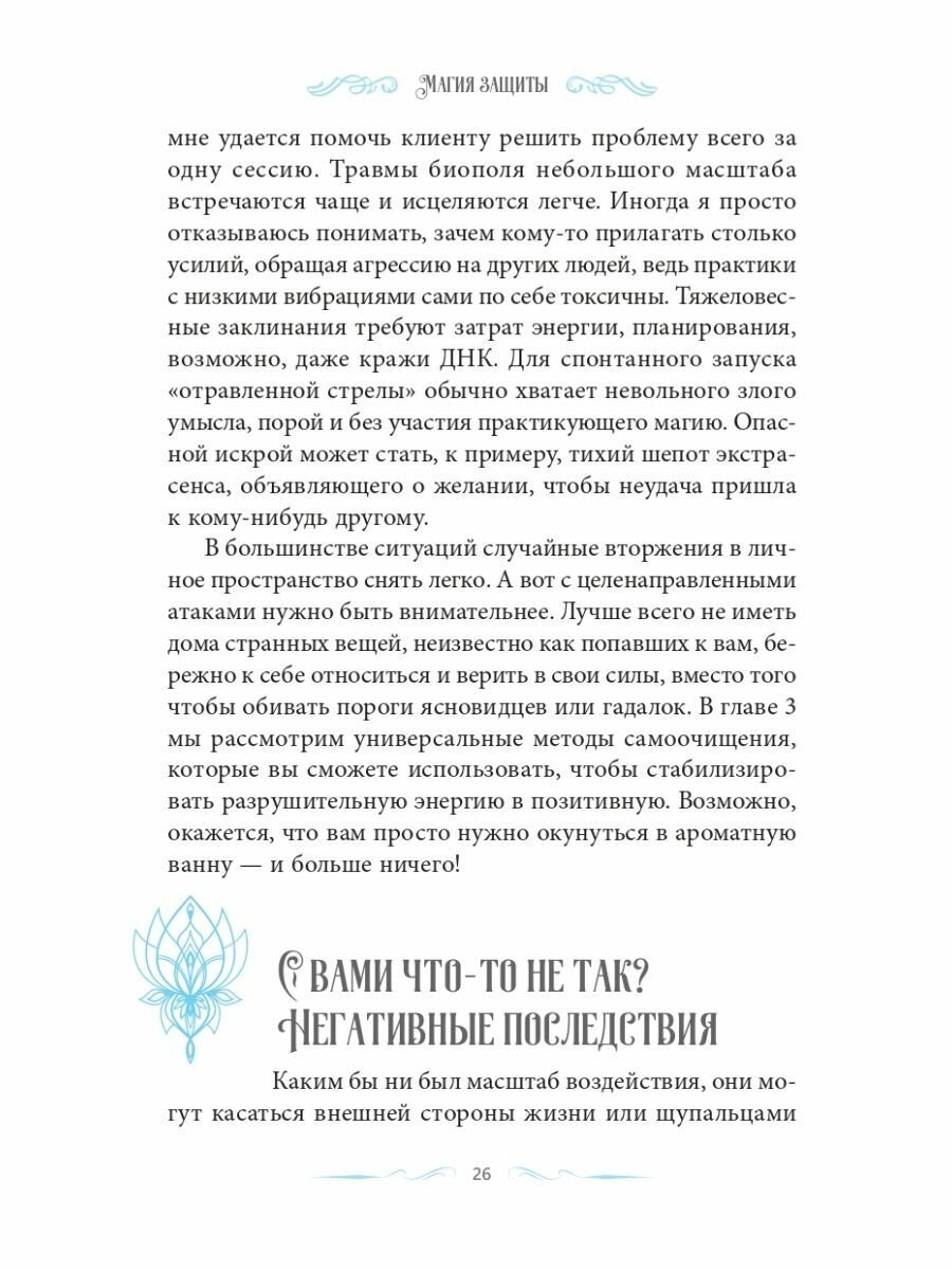 Хорошая книга по защитной магии. Начала её переводить до выхода, сравнила перевод. Издательство немного адаптировало перевод, сделав книгу более мягкой. Некоторые слова, довольно важные, что передают более точный смысл изменены. Например, исчезло слово пересечение. . На мой взгляд, это важно. Особенно для практиков. Слово реверсивный, в некоторых местах убрали, Где-то оставили.