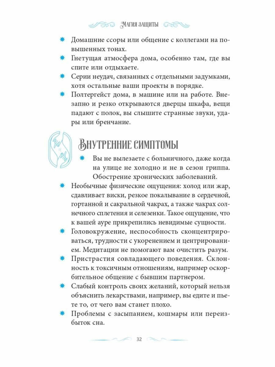 В книге описан многосторонний подход к нейтрализации черной магии. Различные техники - от Таро до очищения дымом, от снятия порчи с жилища до общения с приглашенными духами, помогут противостоять проклятиям и устранить последствия духовного вмешательства или оставшейся магической травмы. Автор приглашает читателя пользоваться полученными знаниями в соответствии с его этическим кодексом.