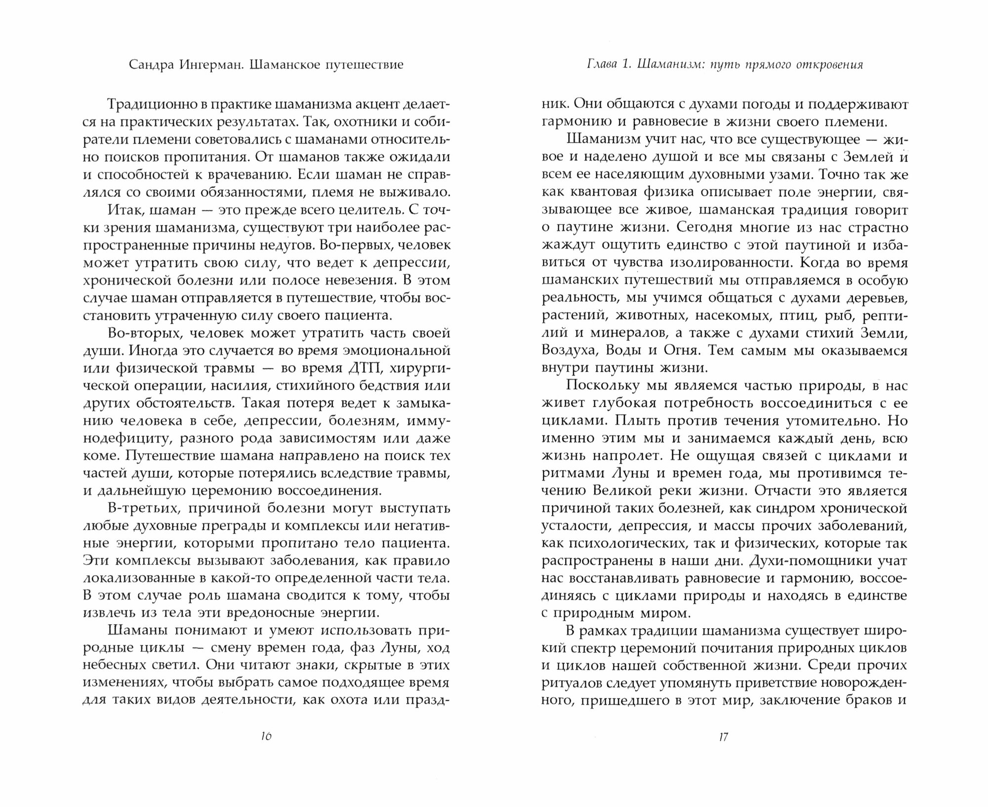 В этой книге Сандра Ингерман на основании своего более чем 20-летнего опыта изучения и преподавания шаманизма, делится одной из самых фундаментальных техник, используемых шаманами всего мира. Эта методика позволяет найти ответы на волнующие личные вопросы, установить связь со своими духовными помощниками и наставниками, помочь другим людям, научиться целительству, а также воссоединиться с природой, ее циклами и ритмами. Данная техника носит название "шаманское путешествие". Сандра Ингерман предлагает курс интерактивного обучения, благодаря которому вы начнете сами практиковаться в шаманских путешествиях, что позволит вам вступить в контакт со своими духами-помощниками, принимать четкие решения относительно карьеры, отношений, проблем со здоровьем, раскрыть дары и сильные стороны своих предков и много другое.
