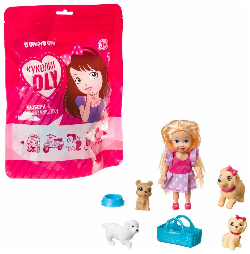 Куклы OLY в пакетиках – это куколки с длинными волосами, с уникальными и интересными аксессуарами: мебелью, питомцами, лошадкой и даже транспортным средством. В этом наборе куколка OLY представлена с 4 разными собачками и аксессуарами для них! При изготовлении мини-куколок особое внимание уделяется деталям и разнообразию аксессуаров. Бондибон - для ярких идей и веселых затей!