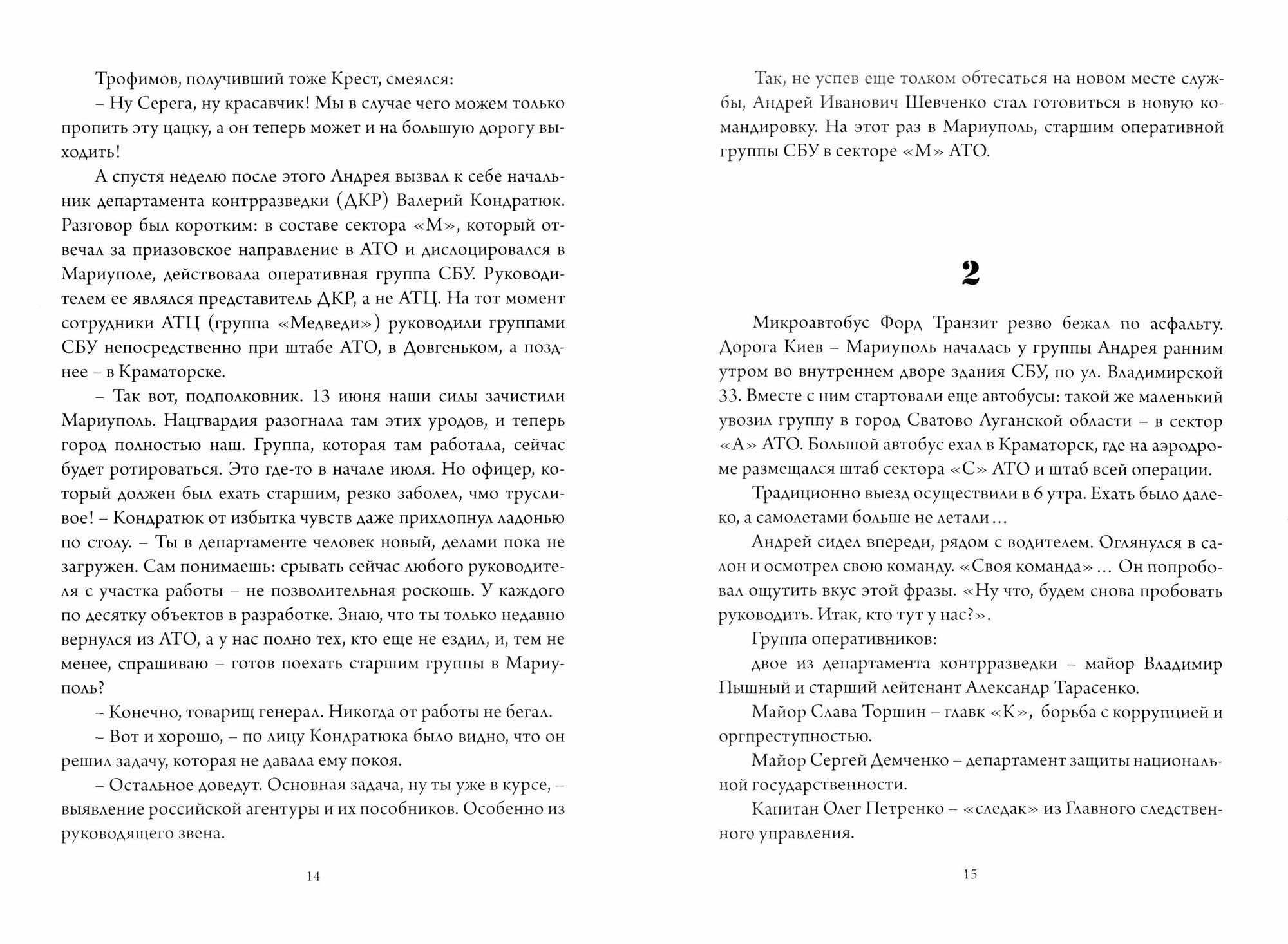 Подполковник Службы Безопасности Украины (СБУ) Андрей Иванович Шевченко направляется в июле 2014 года в очередную ротацию в зону АТО на востоке страны. На этот раз он едет старшим группы СБУ в Мариуполь, в котором сильны пророссийские настроения и которые Киев намерен подавить любыми средствами.