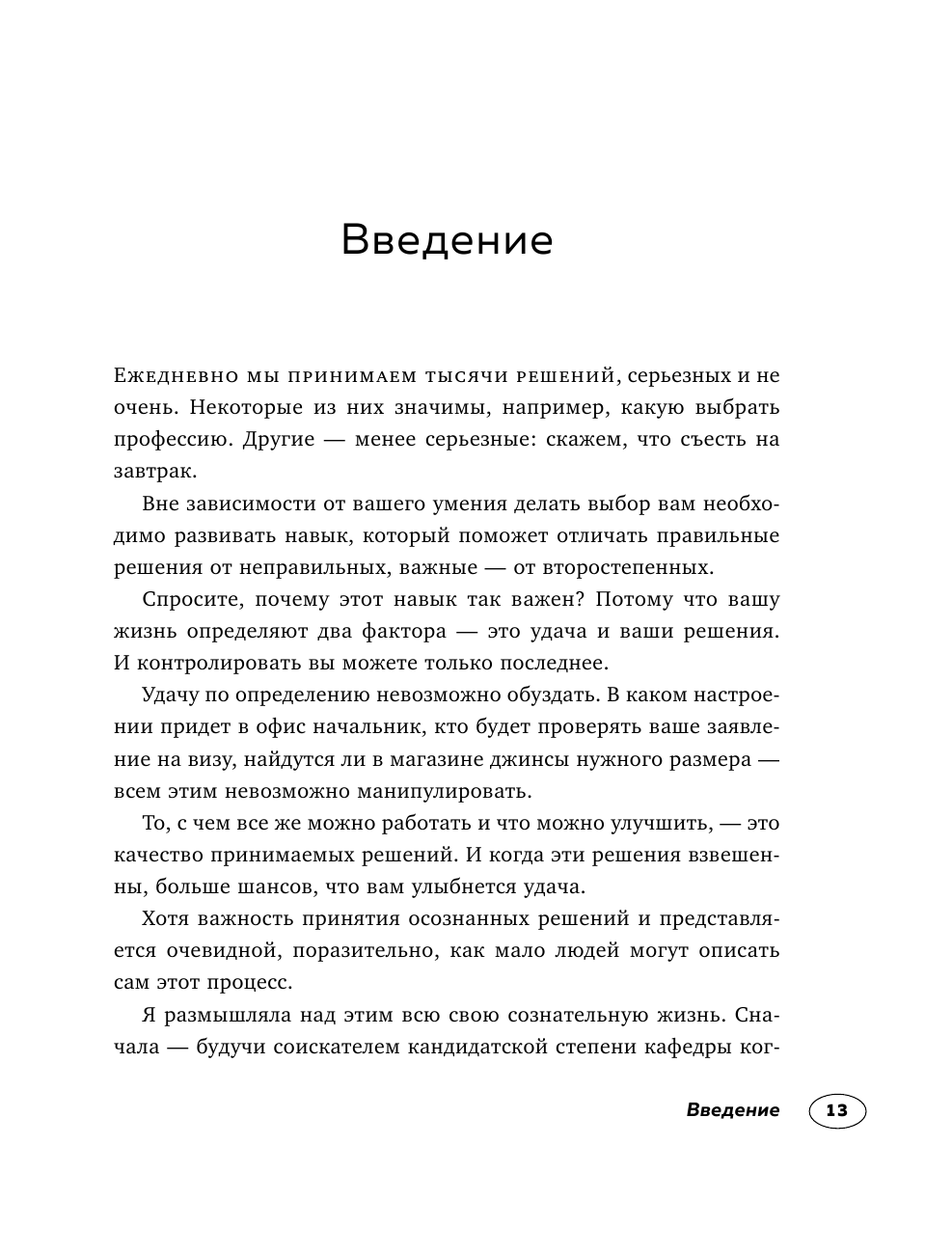Далеко не каждый из нас может быстро и взвешенно сделать важный выбор. Особенно, если ставки запредельно высоки. Энни Дьюк, чемпион мира по покеру и бизнес-консультант, считает, что существует алгоритм принятия верных решений. В своей книге она предлагает 45 упражнений, которые избавят вас от паралича выбора.
