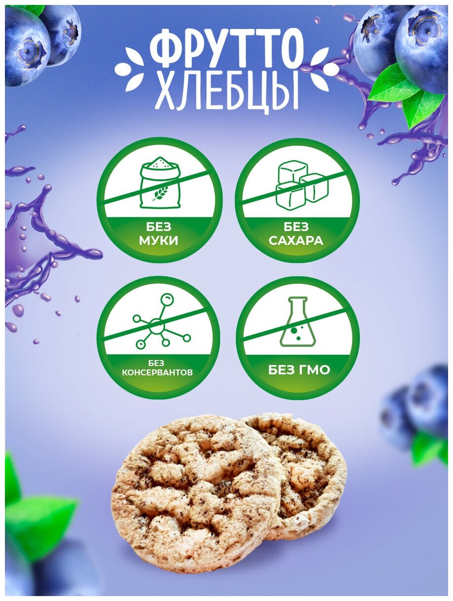 Сладкие хлебцы Фрутто с Черникой - без сахара, муки, красителей и дрожжей отлично подойдут для тех, кто хочет подарить пользу и здоровье своему организму.Хлебцы от Dr.Grain содержат высокое количество клетчатки.Хлебцы так же помогают избавиться от лишних килограммов. Это происходит благодаря ряду особенностей.▲Клетчатка помогает выводить токсины, способствует нормализации обмена веществ, что является существенной поддержкой при стремлении к красивой фигуре.▲Повышенное содержание пищевых волокон препятствует полному усвоению продукта. ▲Благодаря сложным углеводам глюкоза не запасается в виде жира. Идеальная и полезная альтернатива сладостям.