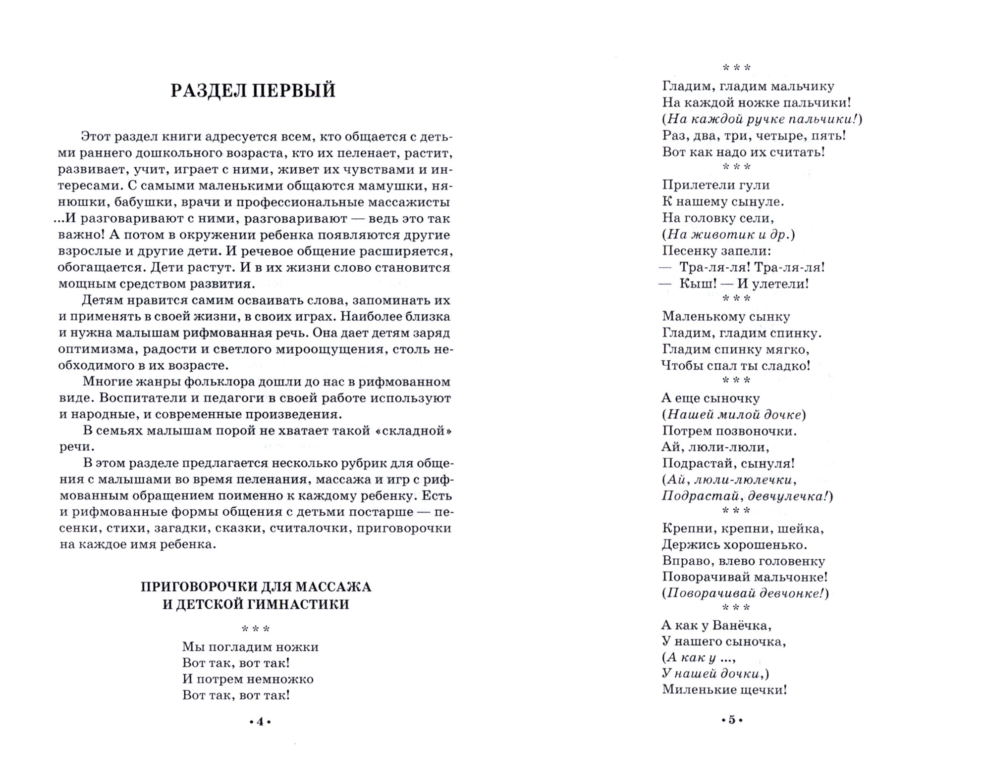 Учебно-методическое пособие состоит из двух разделов. Первый адресован всем, кто общается и играет с малышами, кто вводит детей в мир и помогает в нем жить, расти и развиваться. Автор предлагает использовать шутки, рифмованные загадки, именные приговорочки, стихи, считалочки и песенки, соблюдая правило народной педагогики — «воспитай ребенка в радости».