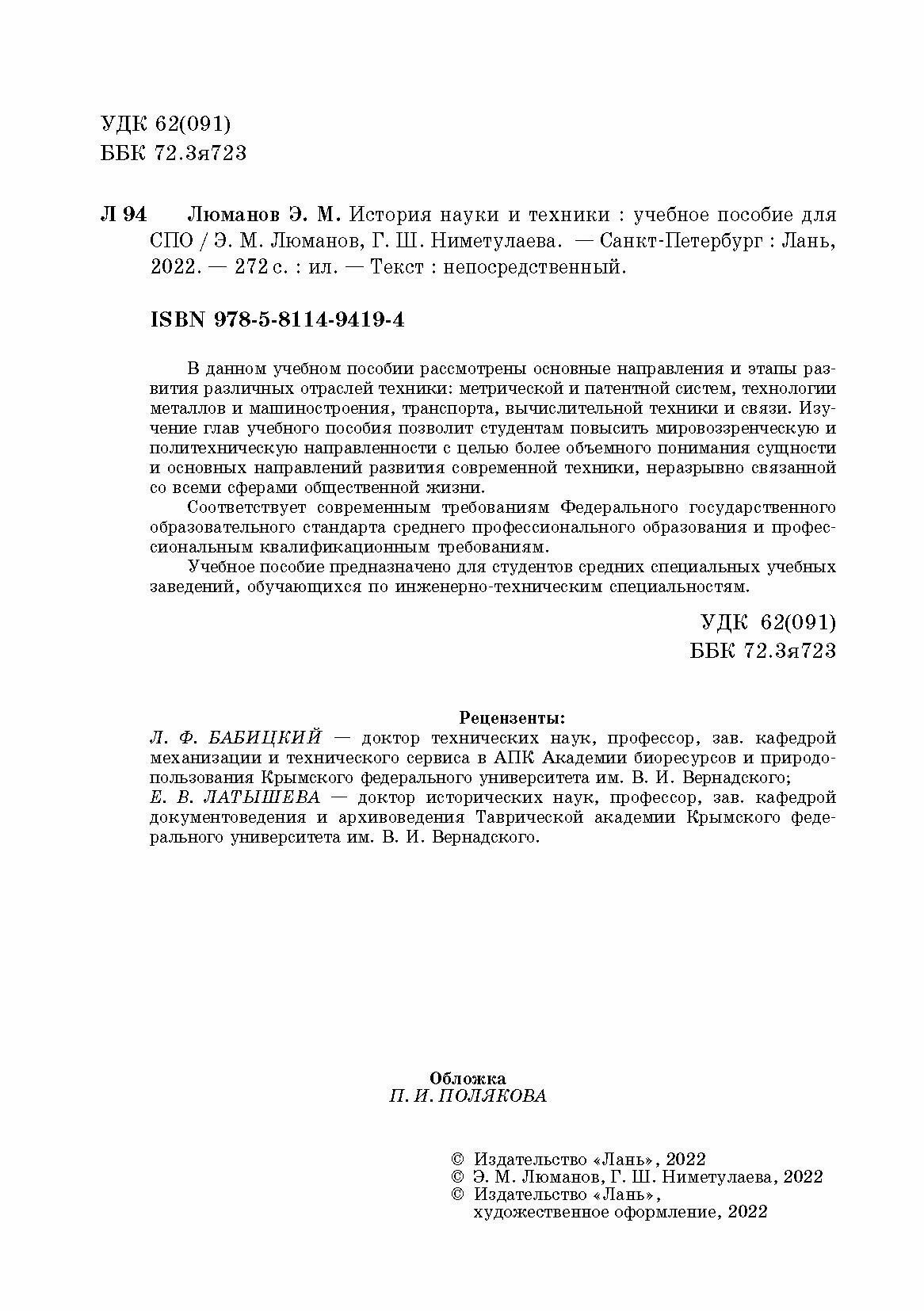 Сервис сравнения цен СкидкаГИД предлагает сравнить цены на товар «Книга: История науки и техники Учебное пособие (Люманов Эскендер Меджитович, Ниметулаева Гульзара Шакировна); Лань, 2022»