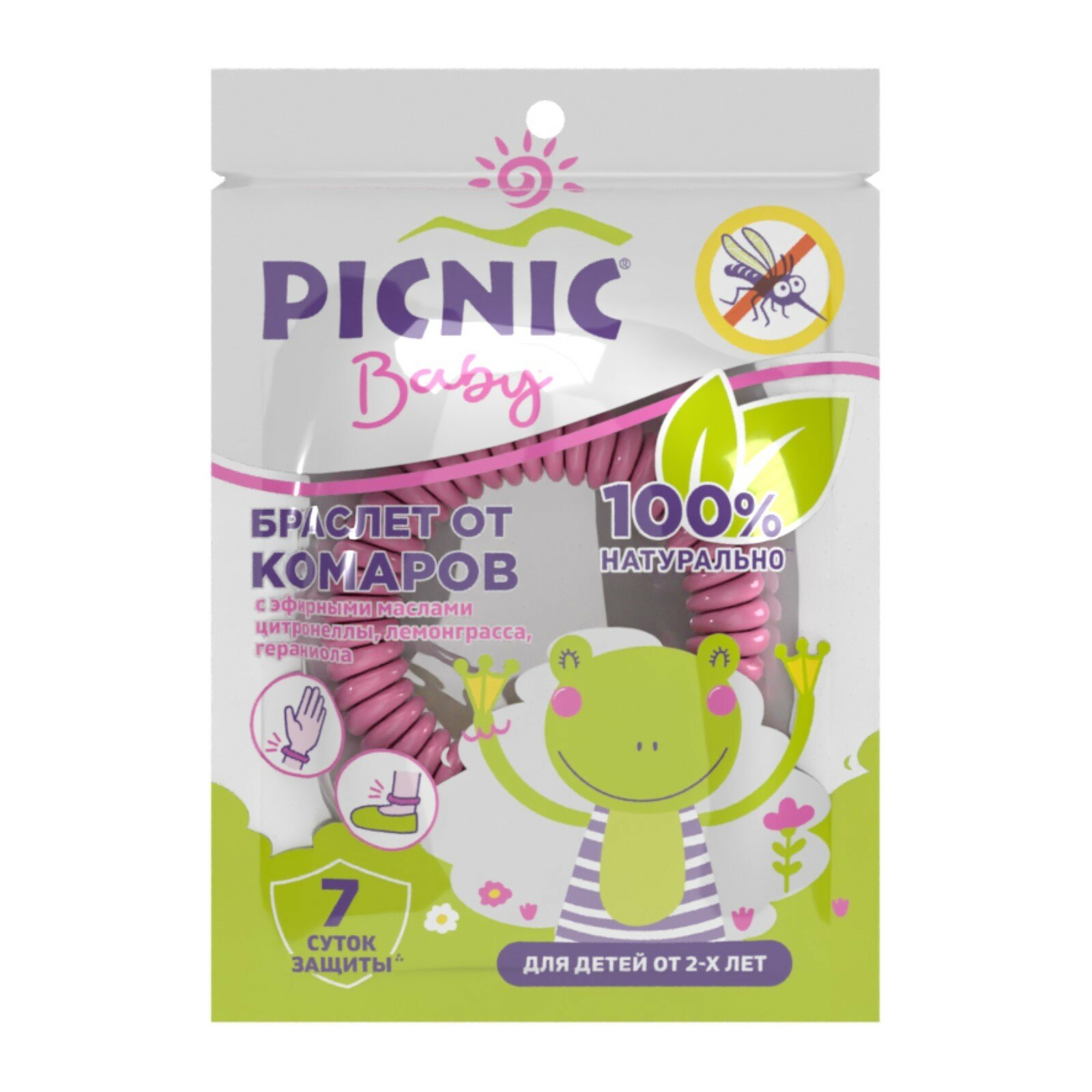 Репеллентный браслет от комаров Picnic Baby для детей от 2-х лет. Браслет от комаров детский Picnic baby изготовлен из высококачественного силикона и пропитан натуральными маслами цитронеллы, лемонграсса и гераниола. Обеспечивает защиту от комаров до 7 суток. 100% натуральные действующие вещества. Подходит для детей от 2-х лет. Подходит для детей от 2-х лет. Можно носить на запястье и щиколотке.