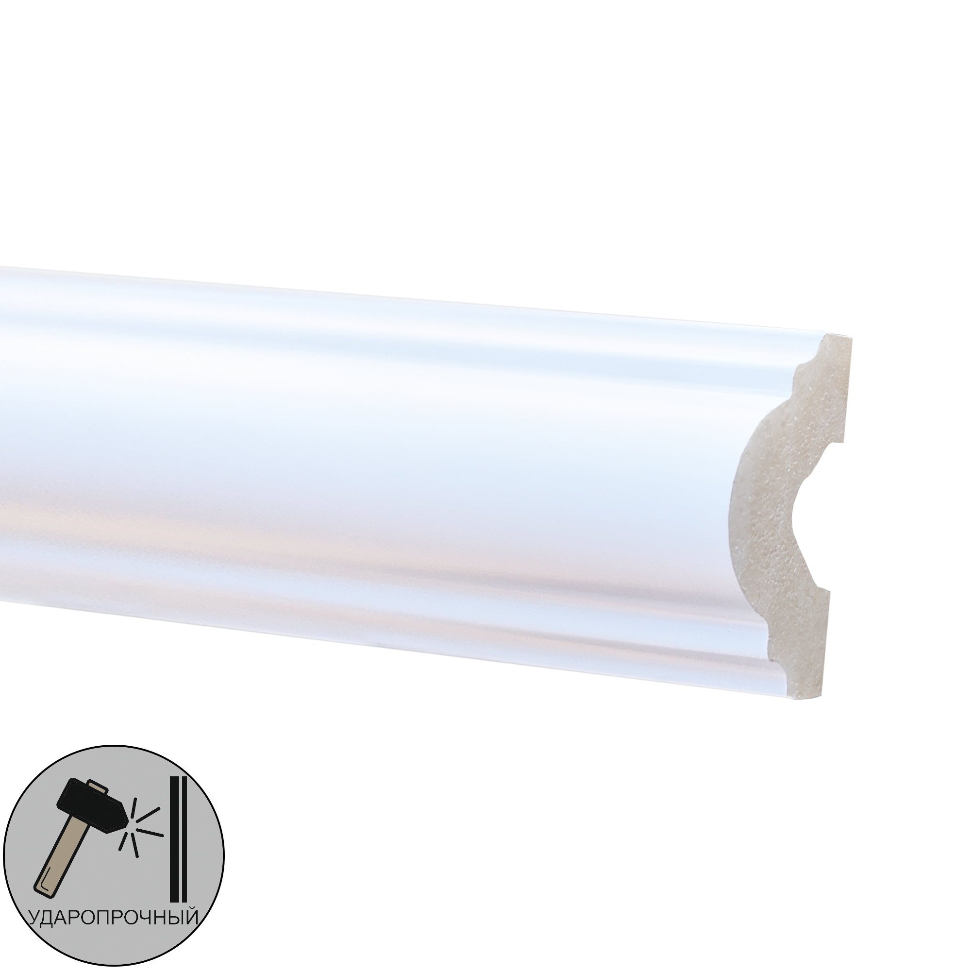 у дюрополимера более высокая прочность, благодаря своей повышенной плотности. Он тяжелее, но это придает материалу повышенную устойчивость к разным механическим повреждениям. Эта особенность позволяет его установку в тех местах, где механическое воздействие особенно вероятно. Данный материал повышенной прочности широко используется не только для изготовления плинтусов, но также оконных проемов и дверных косяков.
