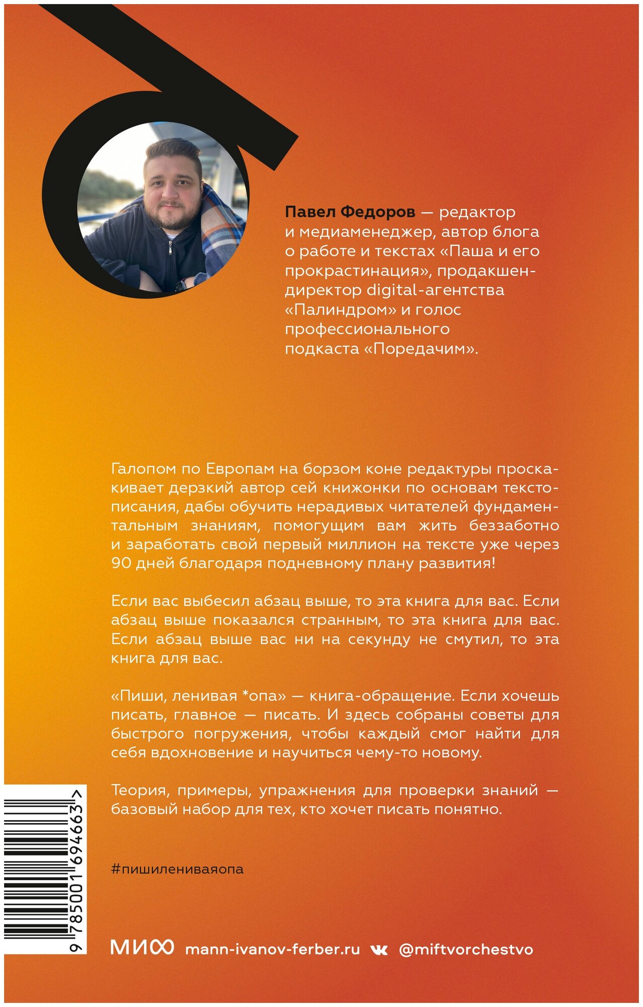 Книга: Пиши ленивая *опа (Павел Федоров); Манн, Иванов и Фербер (МИФ), 2022
