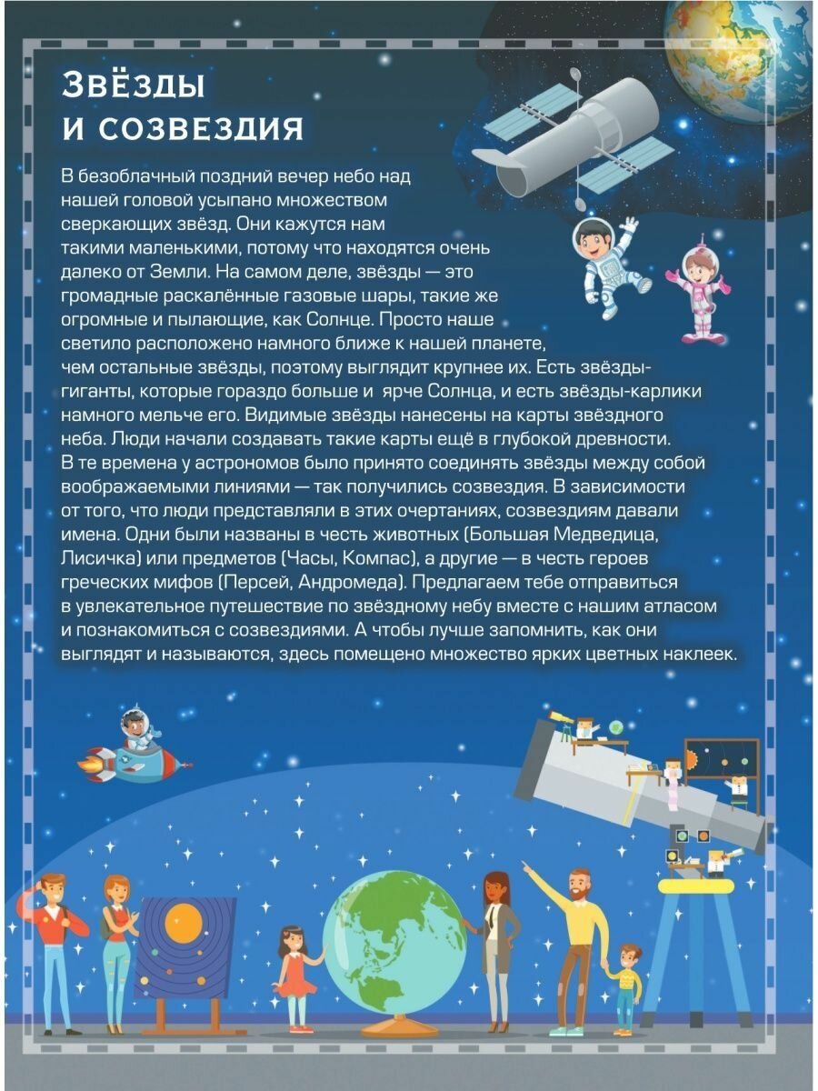 Отличный развивающий атлас! Малыш оценил,очень долго изучает страницы, а от наклеек вообще восторге. Изучаем звёзды, созвездия, планеты. Тема космоса у нас очень актуальна сейчас у ребенка. Атлас отлично подойдёт для любознательных детей , кто интересуется всем, что вокруг; для любопытных и всех "почемучек". С удовольствием проводим время семьёй изучая и рассказывая ребенку о самом интересном, параллельно учимся сами.