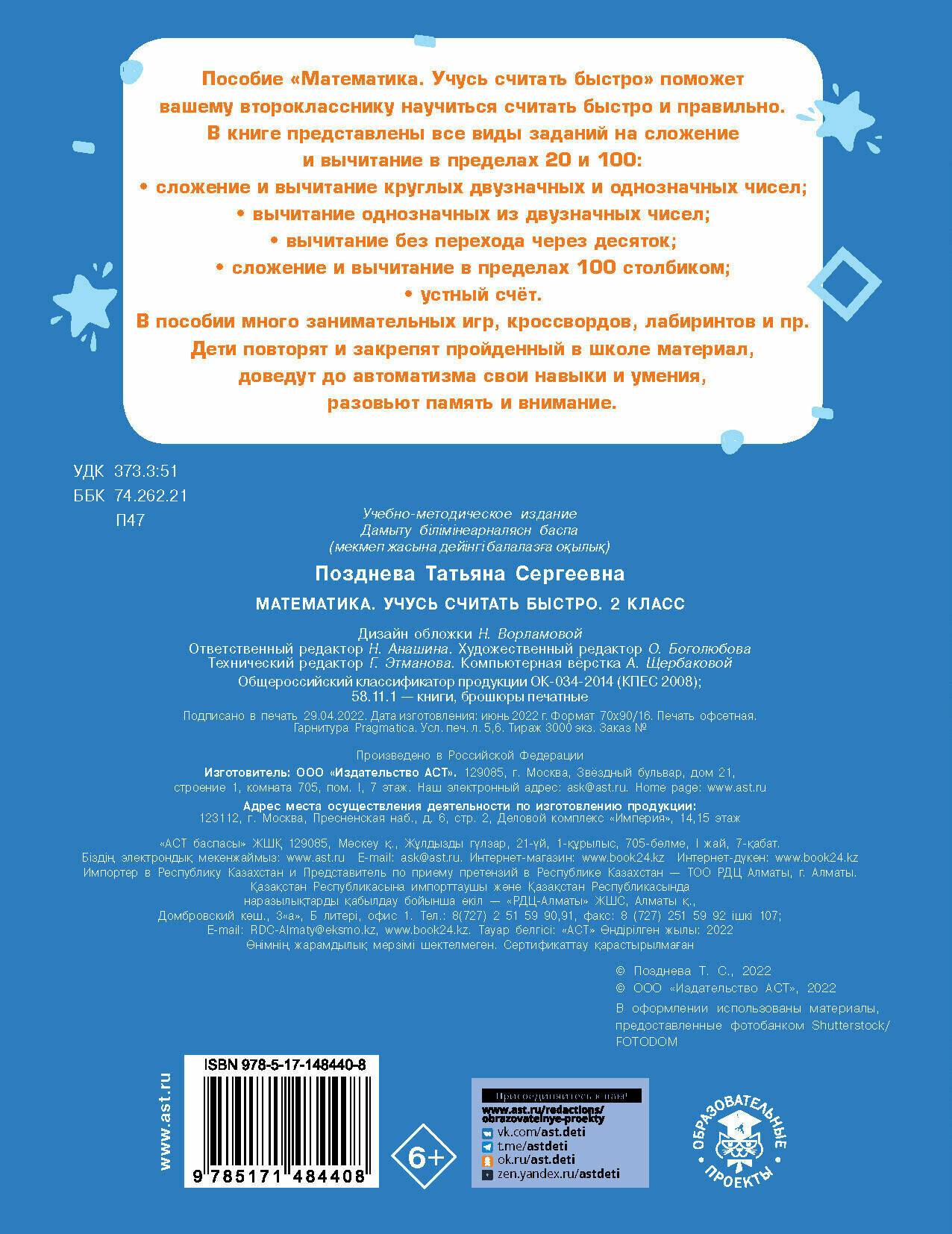 Математика. Учусь считать быстро. 2 класс (Татьяна Сергеевна Позднева); АСТ, 2022