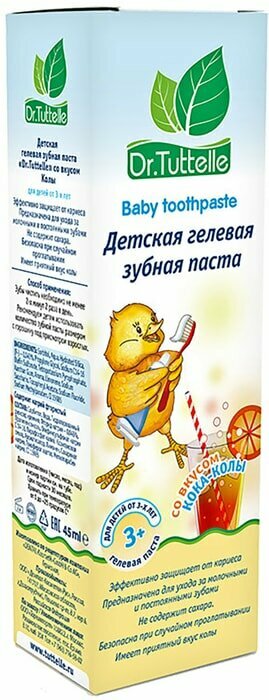 Детская гелевая зубная паста Dr.Tuttelle не содержит сахара. Эффективно защищает от кариеса. Предназначена для ухода за молочными и постоянными зубами. Рекомендуется с первого зуба для приучения детей к чистке зубов. Безопасна, не вызывает раздражения при случайном проглатывании, нежно очищает неокрепшую эмаль детских зубов.