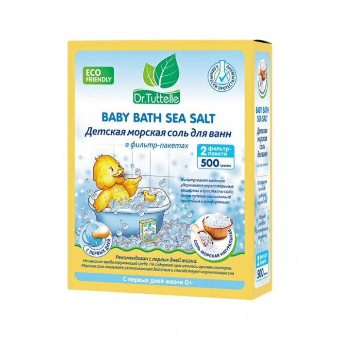 Морская соль для ванн Dr. Tuttelle натуральная подходит для купания детей с рождения. Обогащает воду минералами, уменьшает покраснения и зуд. Способствует общему укреплению организма, оказывает успокаивающие действие и подготавливает ребенка ко сну.Способ применения: не разрывая фильтр-пакет, опустить его в ванну при температуре воды 35–38 градусов. Фильтр-пакет с нерастворимыми остатками выбросить. Ванну принимать 10–20 минут. После ванны ополоснуть ребенка чистой теплой водой.Перед применением рекомендуется проконсультироваться с врачом-педиатром.