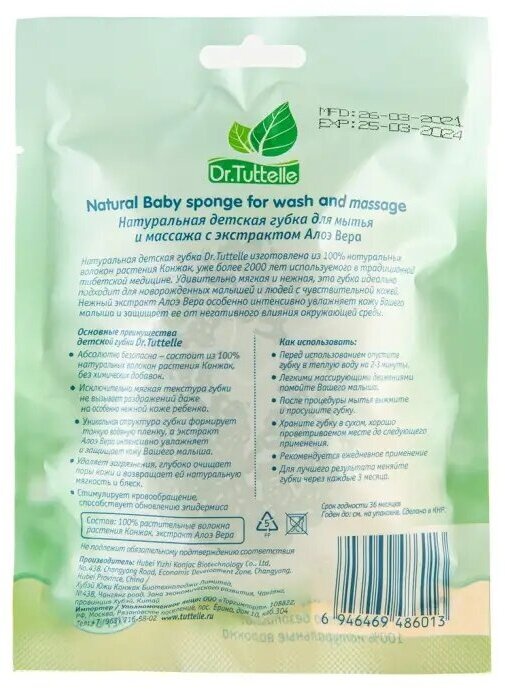 Губка для мытья и массажа Dr.Tuttelle детская с экстрактом Алоэ Вера