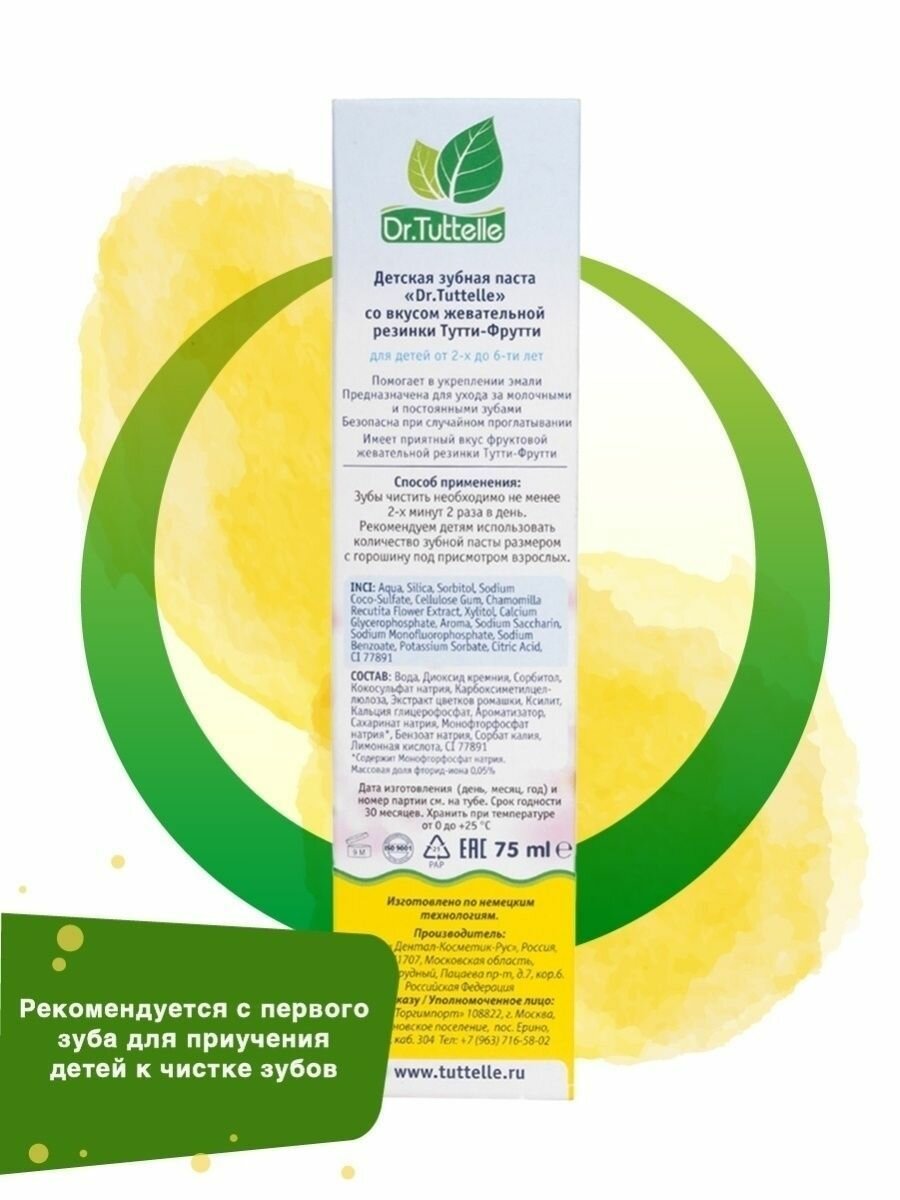 Зубная паста Dr.Tuttelle Детская со вкусом Тутти-Фрутти 2-6 лет 75мл