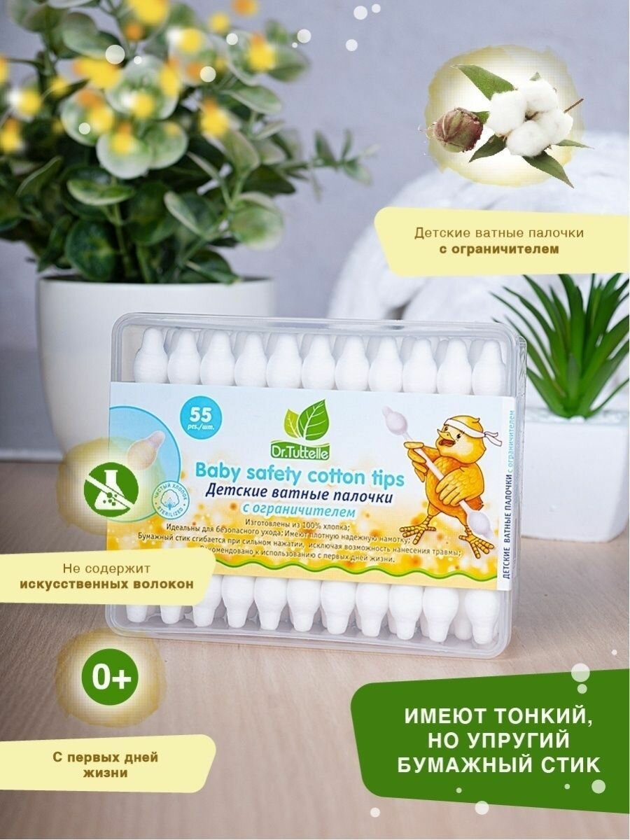 Модель: Ватные палочки детские Dr.Tuttelle с ограничителем 55 штук