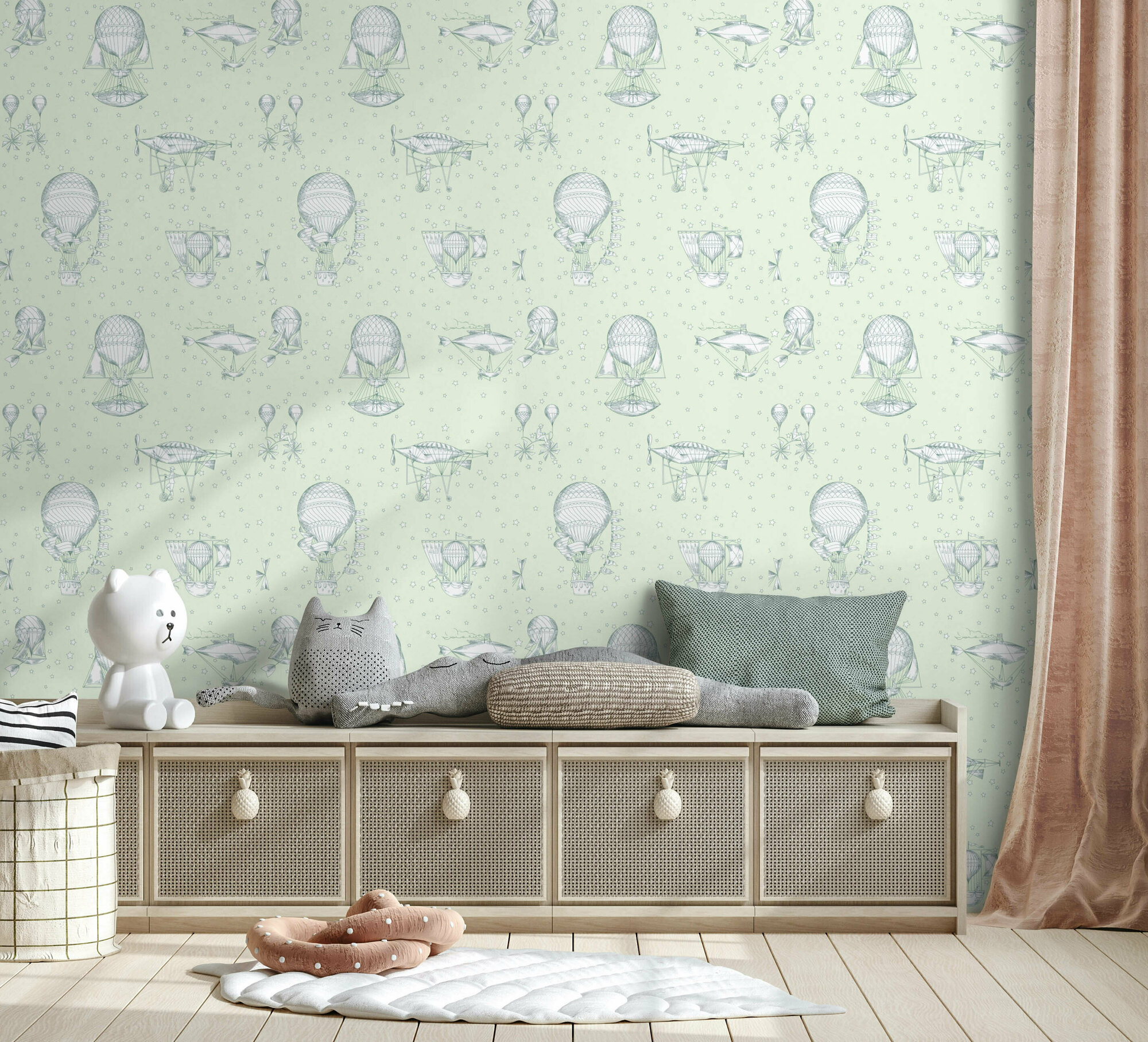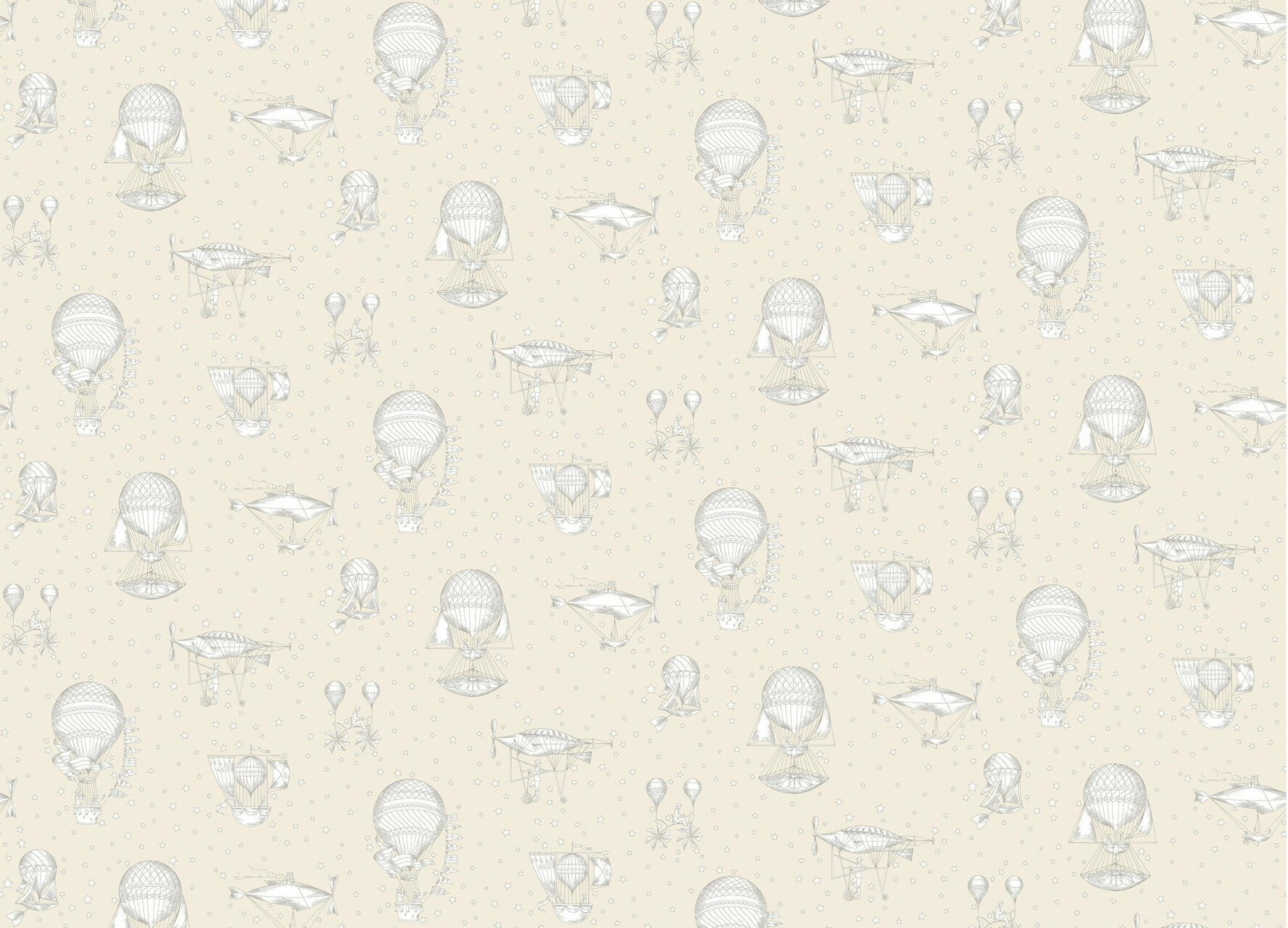 Обои детские Grandeco Jack n Rose 2024 JR 3003 Винил на флизелине (0,53*10,05) Бежевый, Воздушные шары/Звезды/Люди