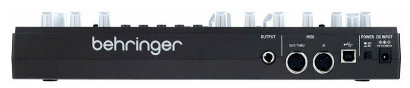 Аналоговый монофонический басовый синтезатор. 1 осциллятор, формы волны Triangle и Square, фильтр Low Pass, параметры Decay и Accent. 16-шаговый секвенсор, эффект Distortion. Входы Filter и Sync, выходы CV/Gate, выход для наушников, общий линейный выход. Вход и выход MIDI, USB-интерфейс, питание от адаптера (в комплекте).