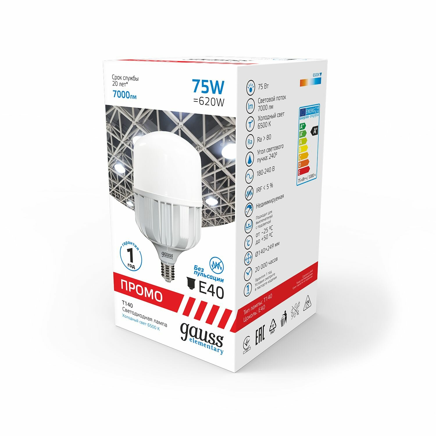 Светодиодные лампы высокой мощности в основном используются в освещении помещений большой площади и высокими потолками (от 3,5 метров), а также уличных системах освещения. Высокая мощность и большой световой поток при минимальном энергопотреблении - Gauss Т100-Т160.