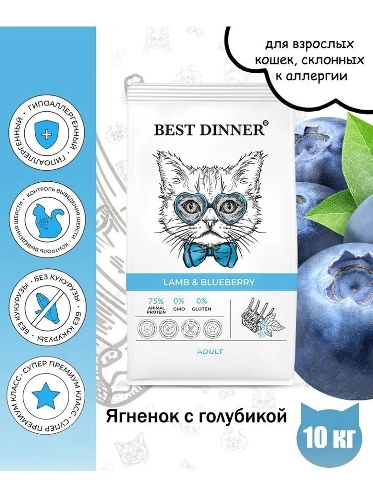 для склонных к аллергии и пробл. с пищевар. ягненок с голубикой сух.400г Best Dinner При чувствительном пищеварении
