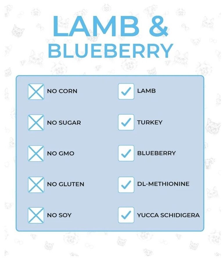 | Ингредиенты (вкус) | Ягненок,Голубика |