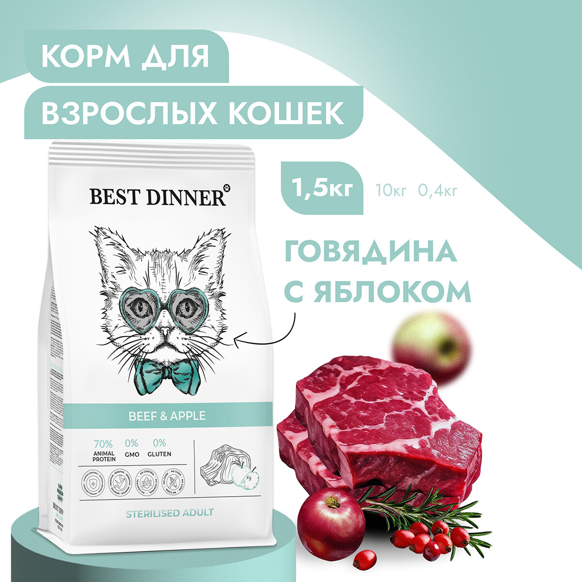 для стерил.склонн.к аллергии и пробл.с пищ. говядина с яблоком сух. 10кг Best Dinner
