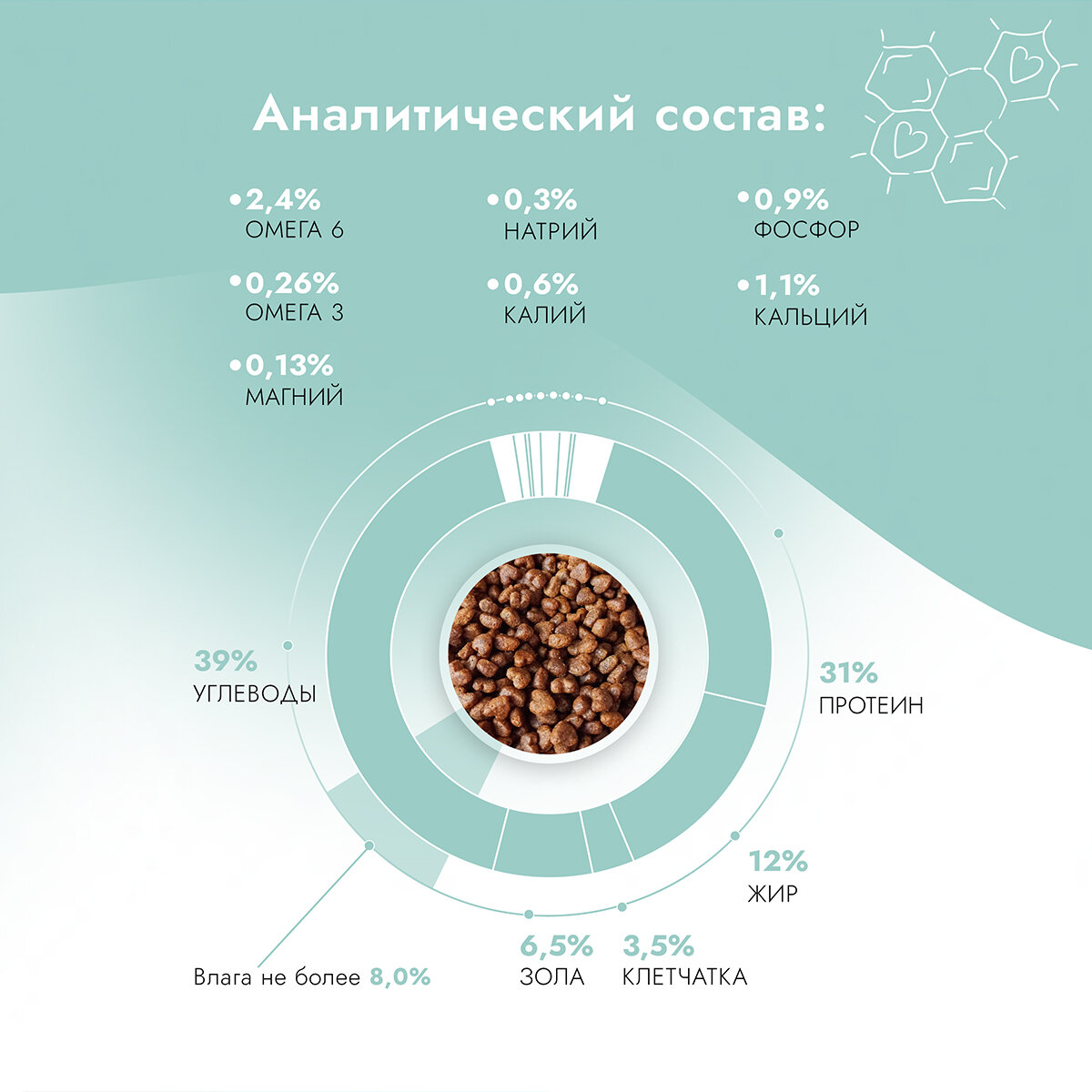 Корм хороший, состав отличный: мясо на первом месте, пшеница и кукуруза не используются, относится к супер премиум классу. Котам понравился сразу, едят очень хорошо, много пьют. В общем, корм к покупке рекомендую