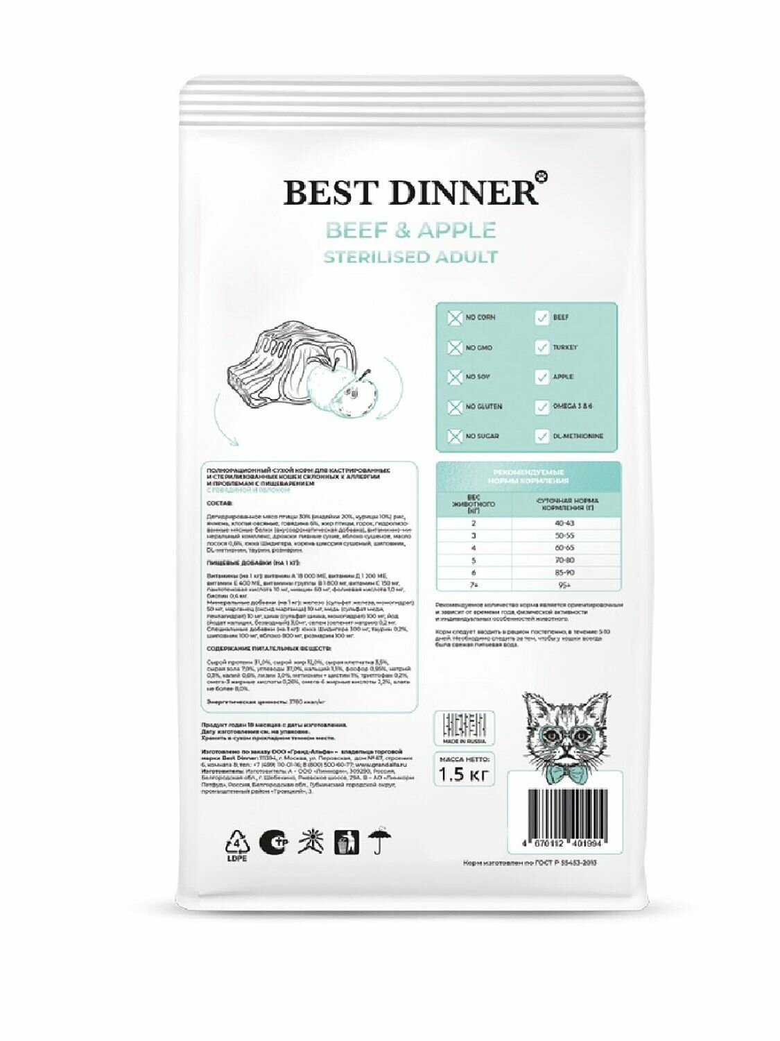 для стерил.склонн.к аллергии и пробл.с пищ. говядина с яблоком сух.400г Best Dinner Sterilised