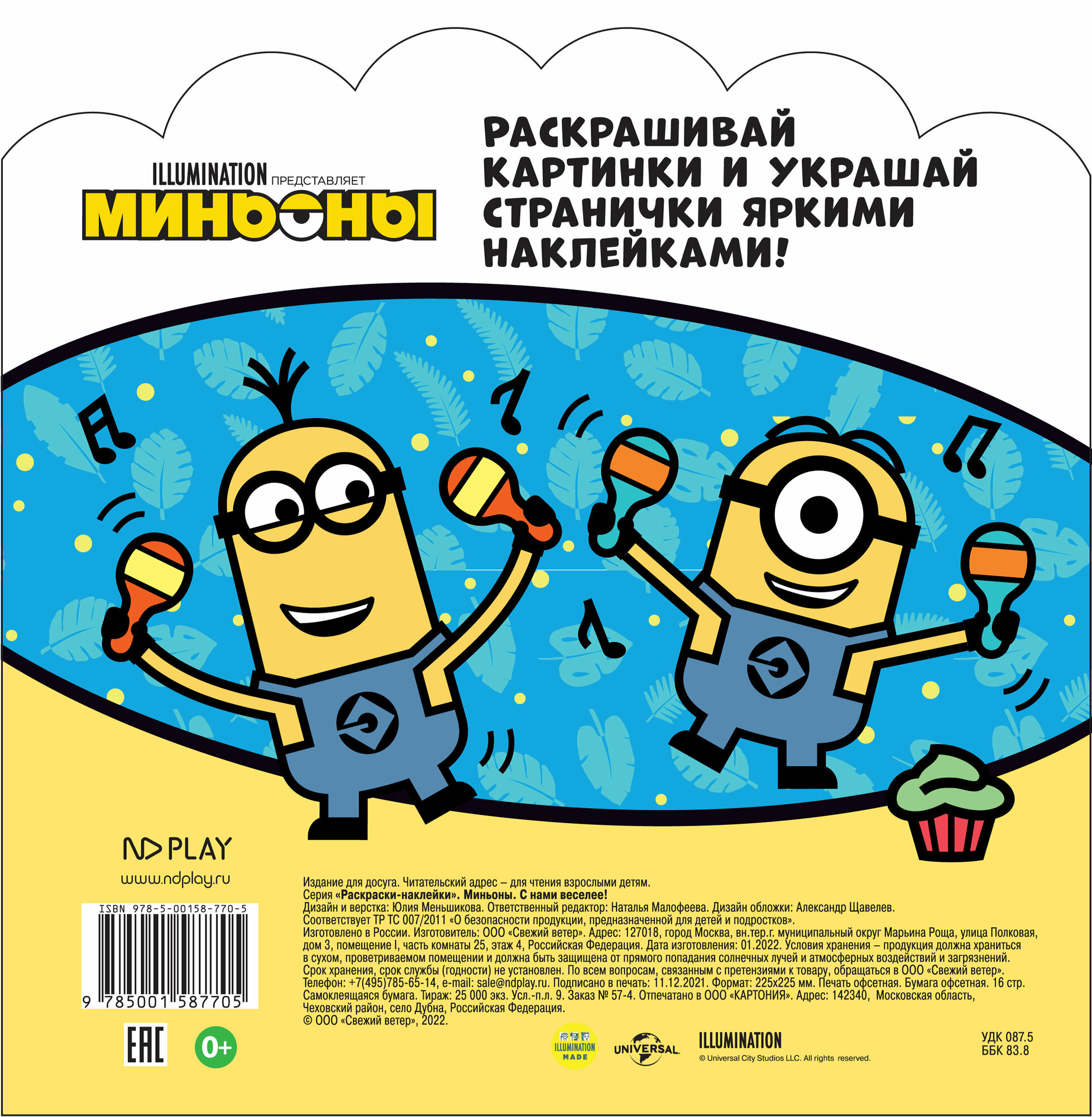 Раскраски-наклейки. Миньоны. С нами веселее! (Малофеева Н. (ред)); ND PLAY, 2022