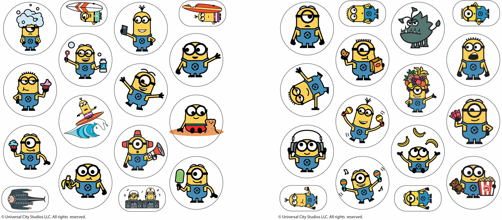 Раскраски для детей с многоразовыми наклейками и любимыми Миньонами! На каждой странице ребенок найдет раскраску и поле для яркой наклейки, которую можно использовать как образец.