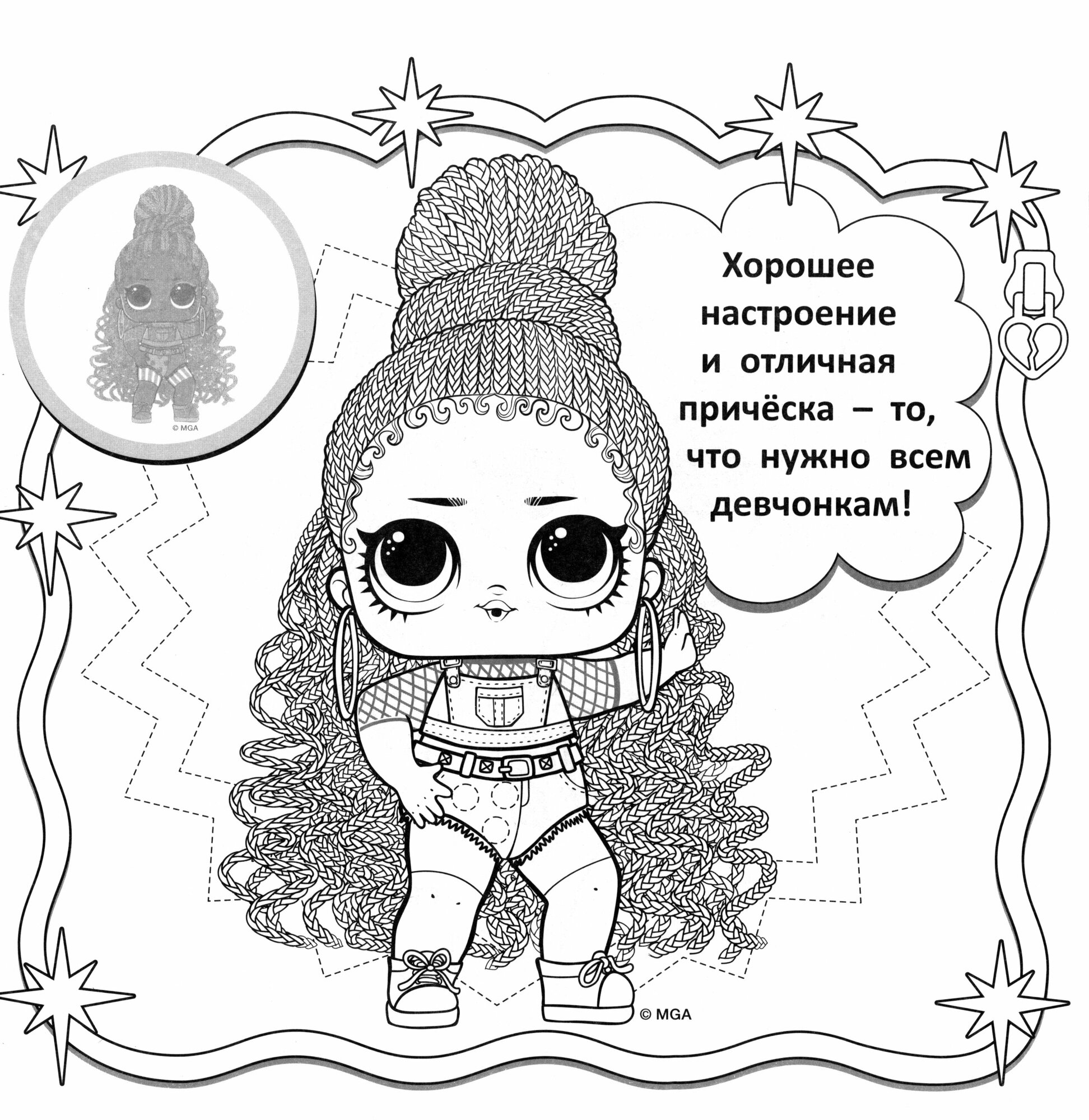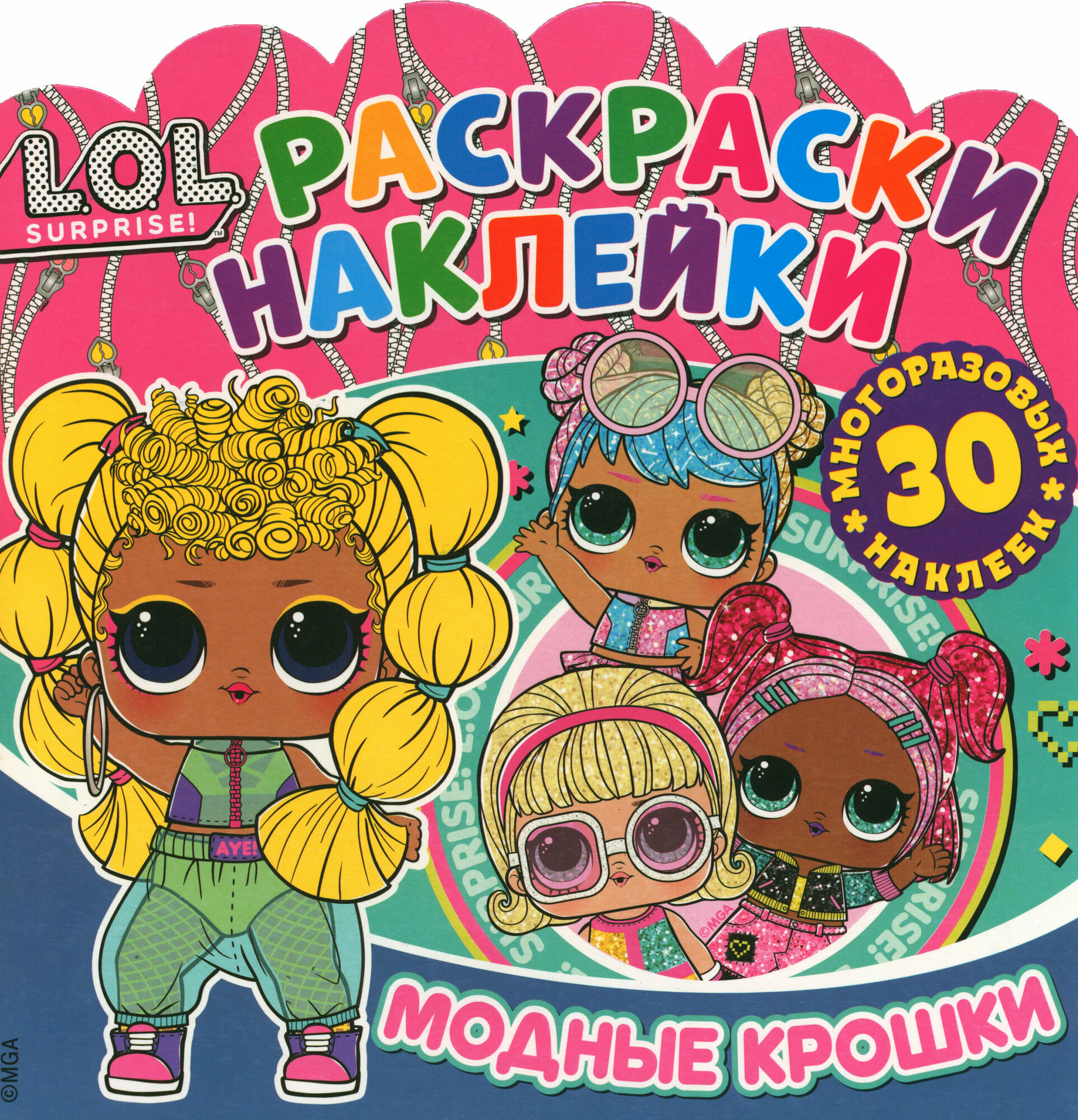 Раскраски для детей с многоразовыми наклейками и любимыми куколками L.O.L. Surprise! На каждой странице ребенок найдет раскраску и поле для яркой наклейки, которую можно использовать как образец.