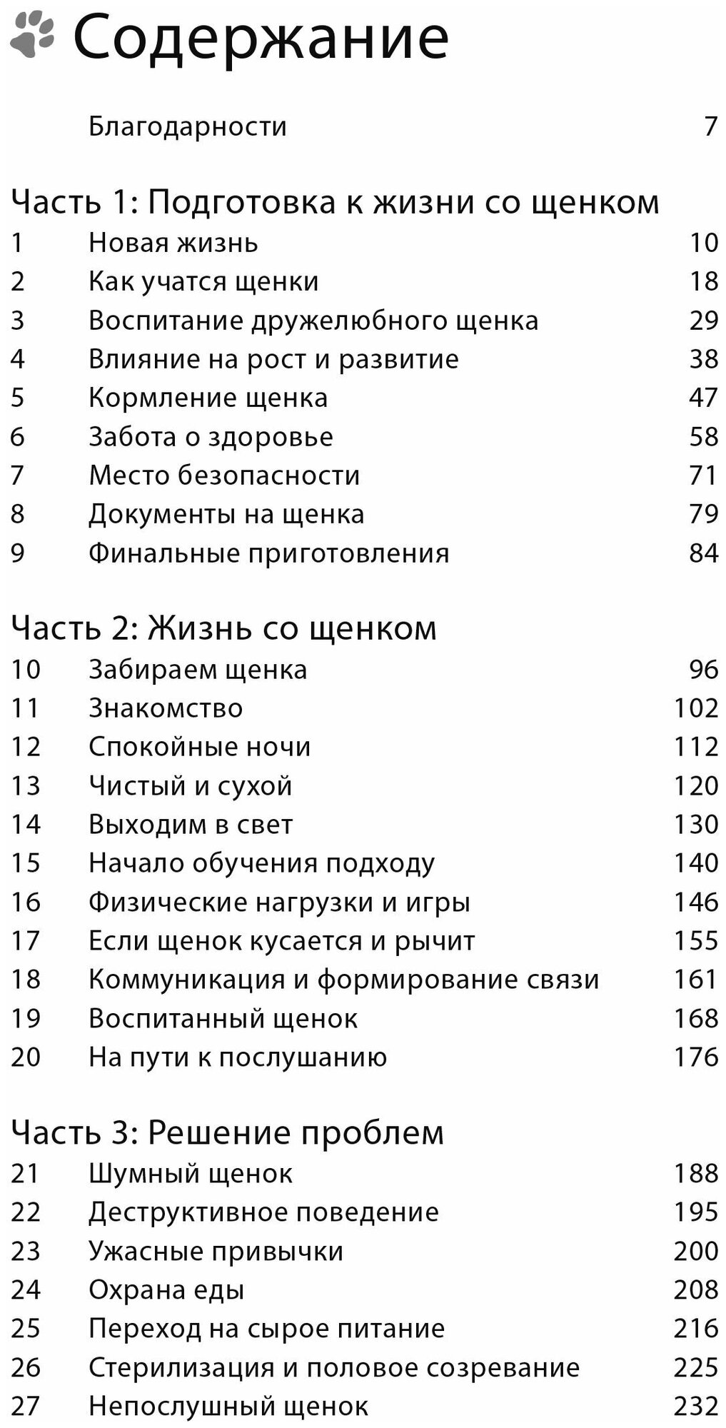 В книге рассказывается о том, как выбрать щенка, как вести дела с заводчиком, как подготовить дом к появлению щенка, как заботиться о здоровье, кормить и конечно же как воспитать щенка так, чтобы он вырос счастливой, социализированной собакой. Книга поможет решить многие проблемы, с которыми может столкнуться хозяин в процессе воспитания щенка.