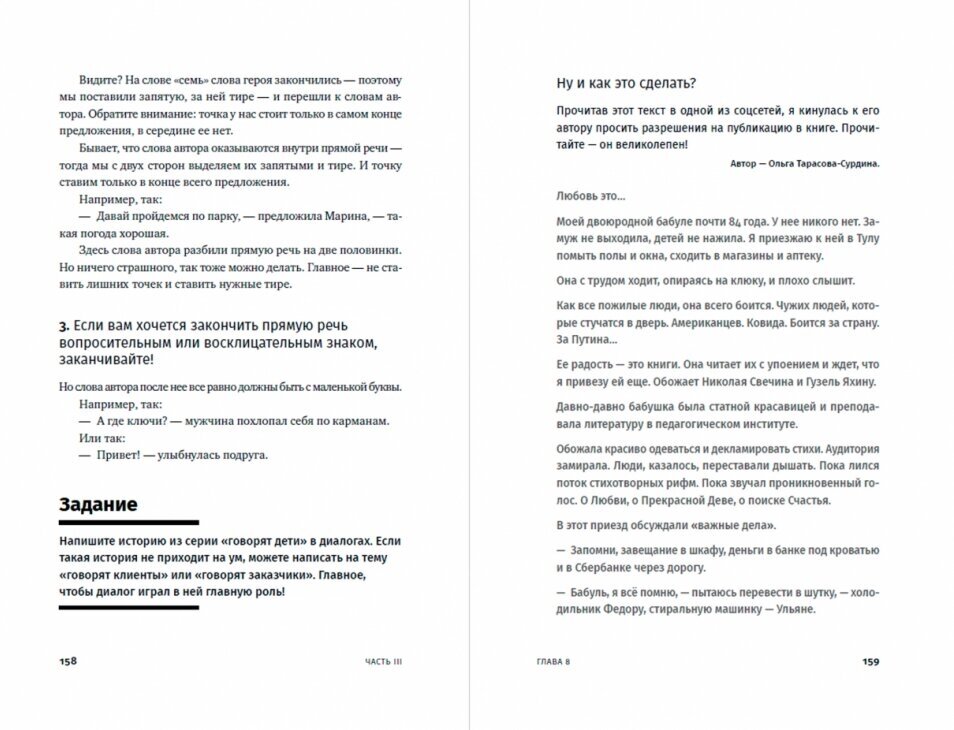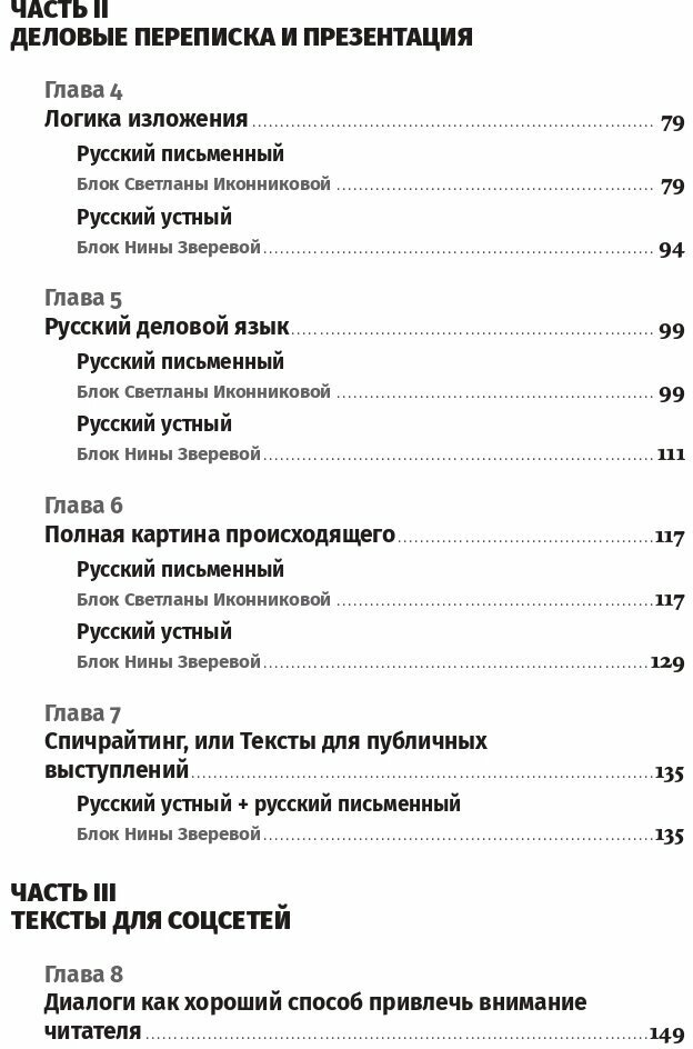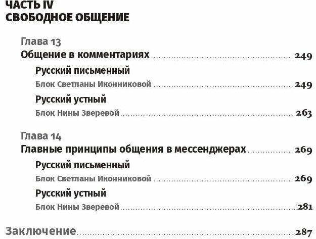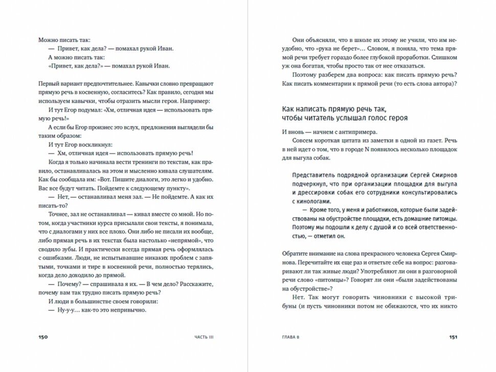 Книга читается невероятно легко, помогает структурировать свои мысли. Многие из лайфхаков будто бы находятся на поверхности, но отчего-то мы постоянно забываем о них в реальной жизни. Главная изюминка книги в том, что каждый из авторов отвечает за свою часть: русский письменный и русский устный. Но это не значит, что мы читаем оторванные друг от друга тексты. Отнюдь. Разделы двух авторов гармонично дополняют друг друга. Да, письменная и устная речь отличается друг от друга. Но есть и сходства. Особенно, когда речь идет о социальных сетях и современной сетевой журналистике. Приводятся реальные кейсы, при желании можно выполнять построенные на их основе задания.
