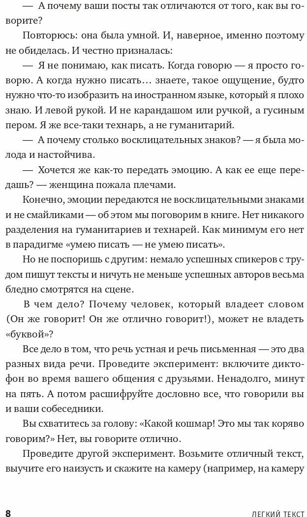 Эта книга вроде бы и не раскрывает тайны за семью печатями, но за то систематизирует и объясняет многие разрозненные знания о публичных выступлениях и текстах для широкой аудитории.