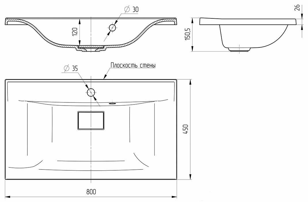 | Без отверстий под смеситель | С 1 отверстием под смеситель |