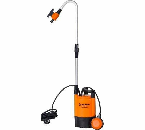 Дренажный насос Вихрь предназначен для полива, лучше всего подходит для подъема воды из бочки, так как оснащен металлическим отводом. Прибор выпускается в корпусе из пластика и укомплектован внешним поплавковым выключателем. В данной модели установлен однофазным электродвигатели с термозащитой.