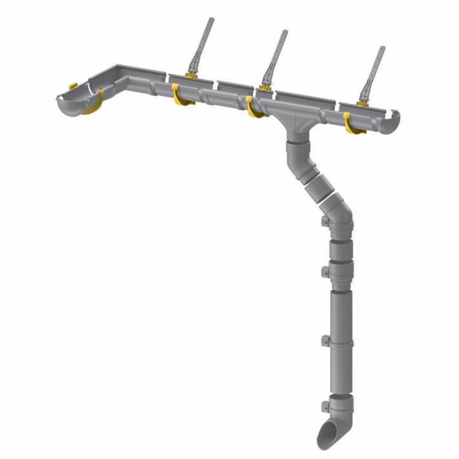 Предназначен для крепления желоба на кровлях с лобовой доской либо на кровлях без лобовой доски (с использованием регулируемого крепления). Расстояние между кронштейнами желоба не должно превышать 500 мм по осям для водосточной системы Standart. При монтаже водостоков следует учитывать, что расстояние между торцами соединительных элементов (соединитель желобов, воронка, угловой элемент 90º/135º) и кронштейнов с каждой стороны не должно превышать 150 мм. Расстояние от заглушки до ближайшего кронштейна не должно превышать 250 мм.