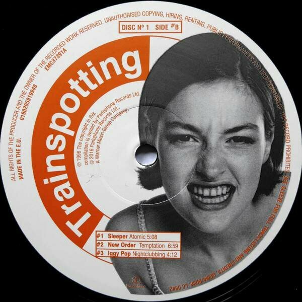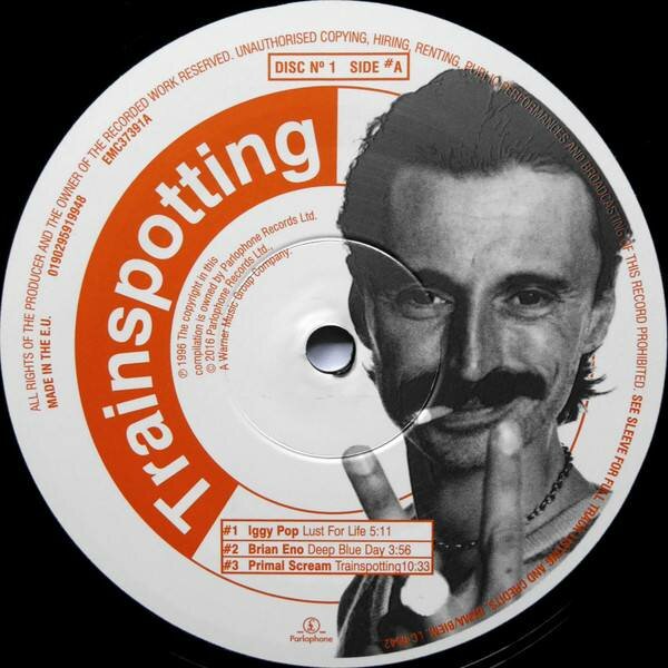 Вместе с фильмом, в свет вышел одноименный саундтрек «Trainspotting: Music from the Motion Picture», состоящий из 14 блестящих треков, записанных поистине легендарными музыкантами, в числе которых Iggy Pop, Lou Reed, New Order, Blur, Pulp, Underworld и многие другие. Стоит отметить, что мировая слава к группе Underworld пришла именно с трека Born Slippy. Виниловая версия сборника на долгое время была снята с производства и теперь является настоящим раритетом. Юбилейное переиздание этого года приурочено к двадцатилетию со дня выхода фильма. Альбом выходит на 180-граммовом виниле, а обложка полностью копирует оригинальную иллюстрацию.