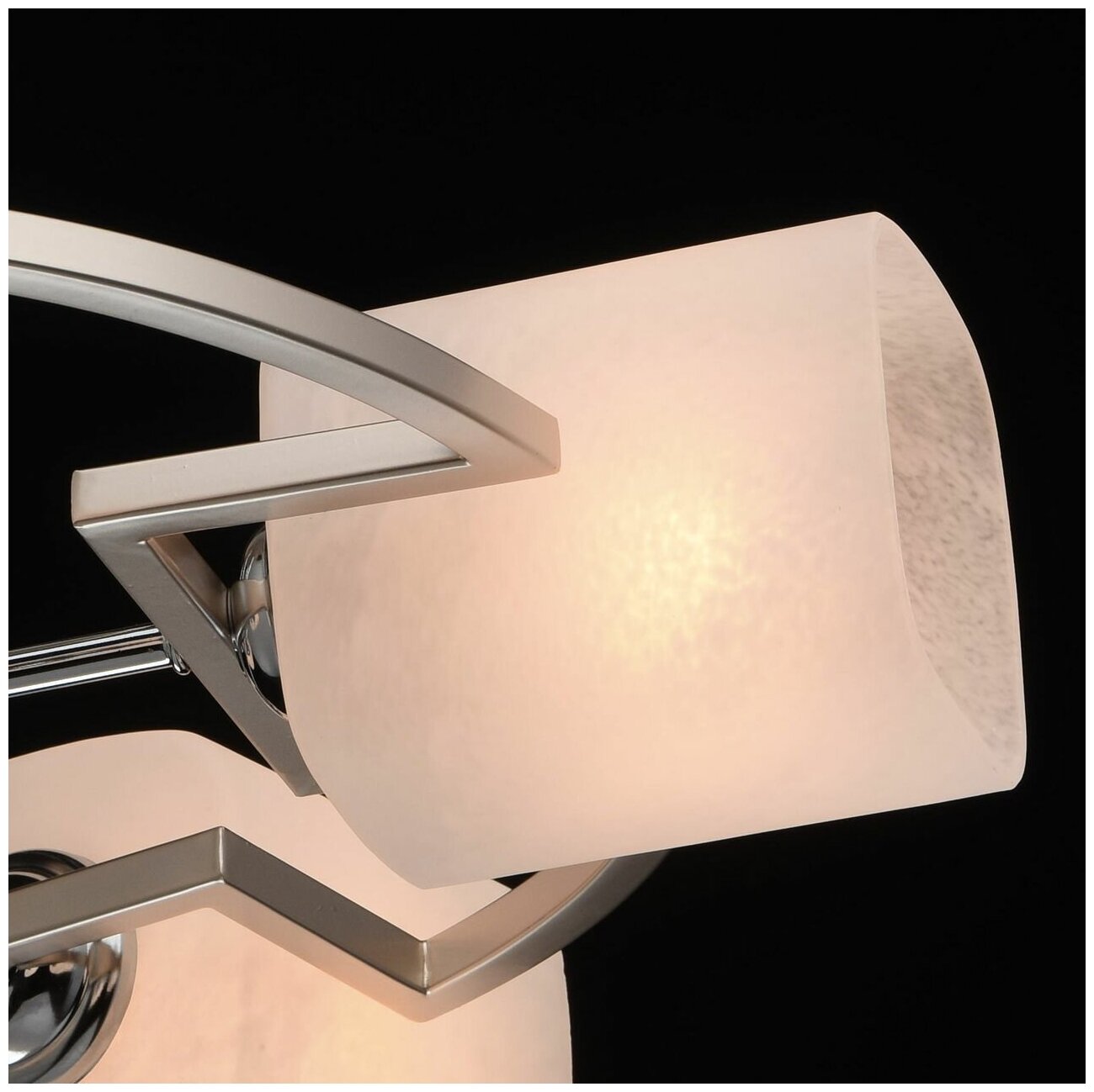 Необычные сочетания, строгие геометрические формы, точные линии, современный дизайн – всё это в люстре из коллекции «Тетро». Металлическое основание радует глаз прекрасным цветовым решением и нежным перламутровым отливом. Оно выполнено в двух вариациях: холодный оттенок хрома и тёплый золотистый. Основание и сдержанный декор из хромированного металла, дополнены квадратными плафонами из алебастрового стекла. Освежающий белый цвет делает светильник ещё более легким и утонченным.