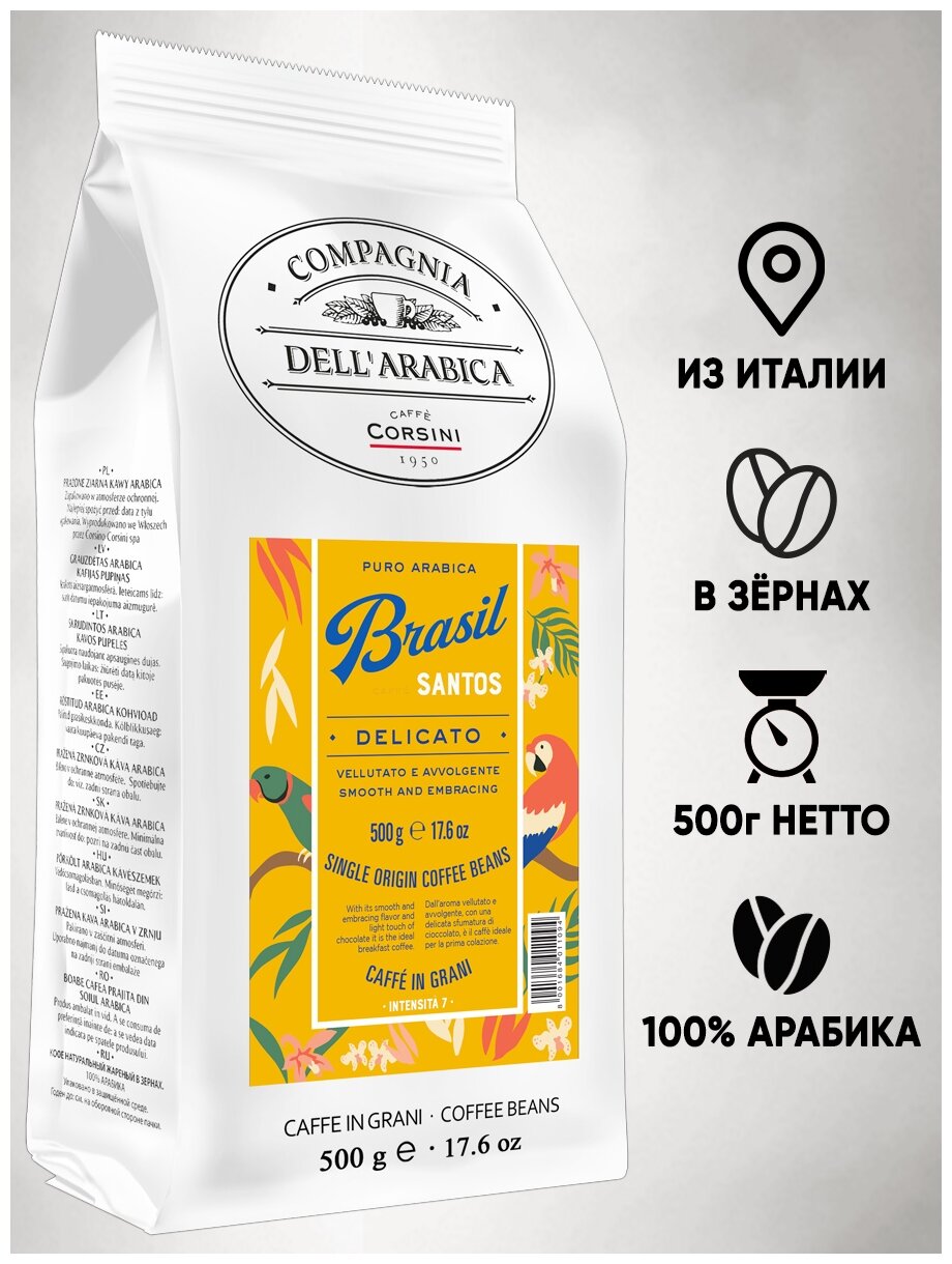 Кофе в зернах Dell Arabica Brasil Santos 500г