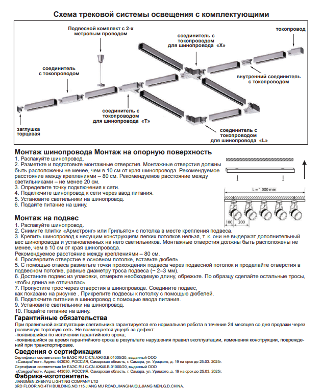 | Тип шинопровода | Однофазный |