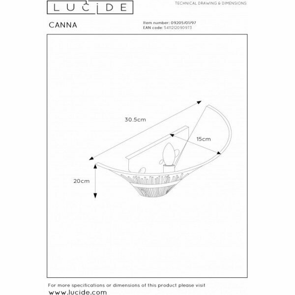 Бра Canna - продукт известной компании Lucide (Бельгия). Имеет максимальную мощность 40 Вт, освещает площадь до 2 кв. м. Отлично подойдет для таких мест, как спальня, гостиная. Впишется в интерьеры следующих стилей: модерн.