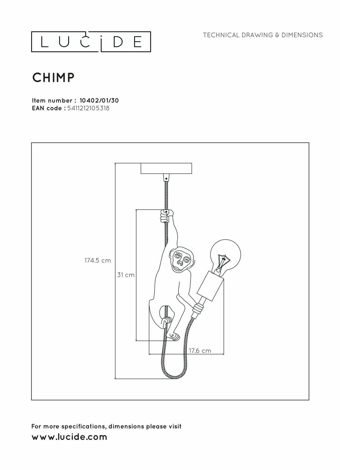 Подвесной светильник Lucide Extravaganza Chimp 10402/01/30