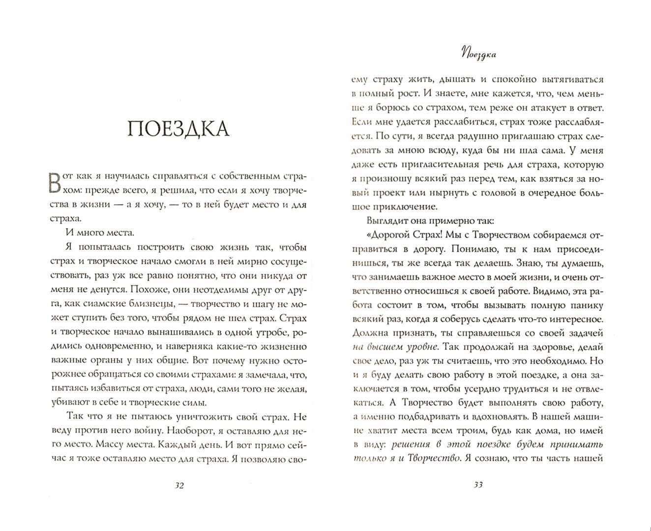 Я с удовольствием читала всю книгу от первой строчки до последней. Обожаю эту книгу. Написана понятным языком. Она может быть настольной. Для вдохновения, для поддержки когда что-то не получается, для смелости. Да, написано: творчество без страха. Но эта книга гораздо обширнее и глубже, чем только про творчество в прикладном значении.