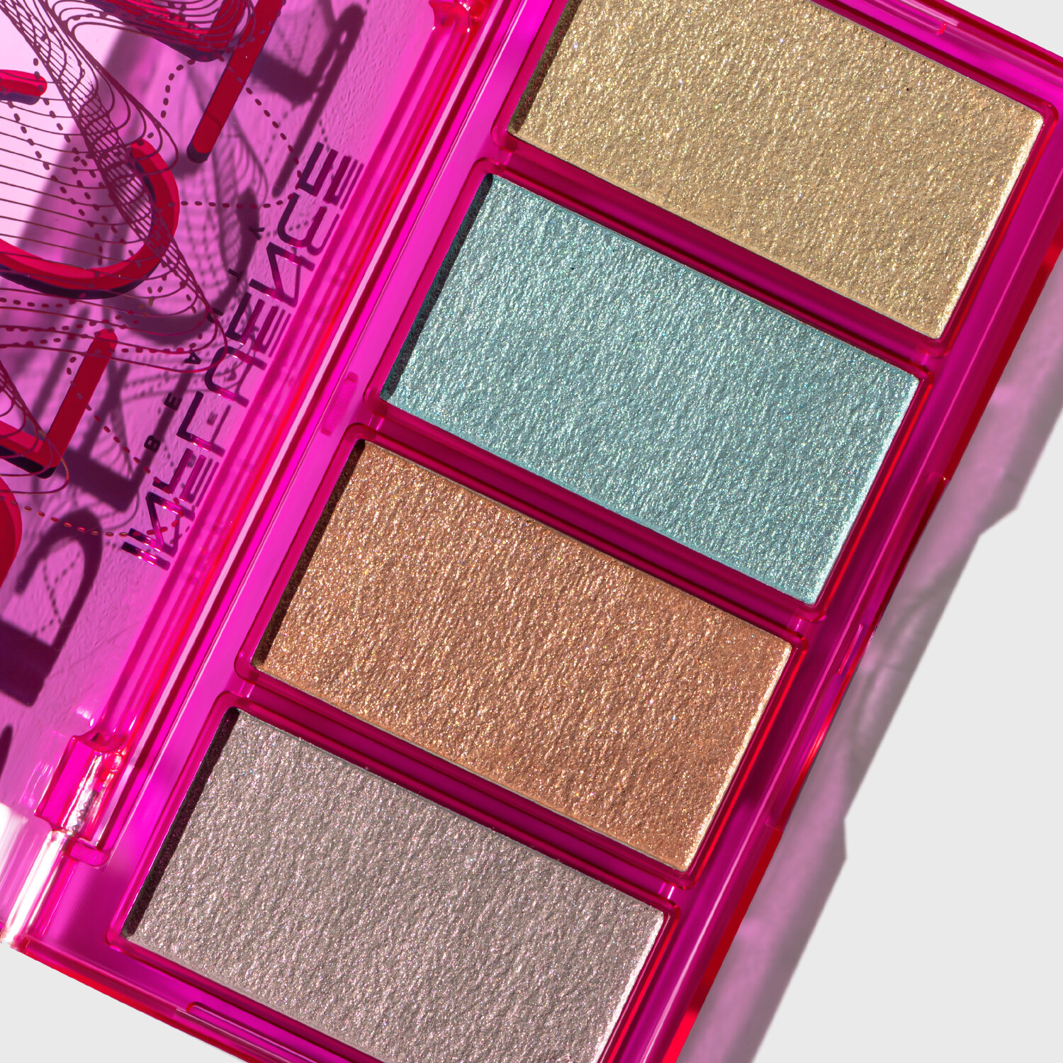 Палетка поможет создать эффект дуохромного свечения. Хайлайтеры содержат пигменты и светоотражающие частицы, которые оставляют на коже влажный сияющий финиш.