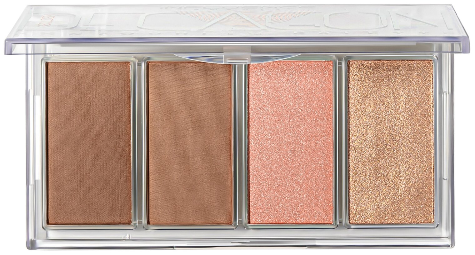 В палетке четыре универсальных оттенка: два скульптора-бронзера, румяна и хайлайтер.